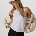 Our super popular Energy Tank gets an extended hemline on this longer version. Made with our super soft performance 4-way stretch moss jersey for moisture-wicking comfort.