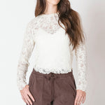 Add a touch of playful elegance with the Exposed Seem Lace Top (Dex). Its semi-sheer fabric invites layering creativity, while the gorgeous lace detail makes every outfit pop. Perfect for mixing and matching, this top brings fun and flair to your wardrobe with a delicate, stylish twist.