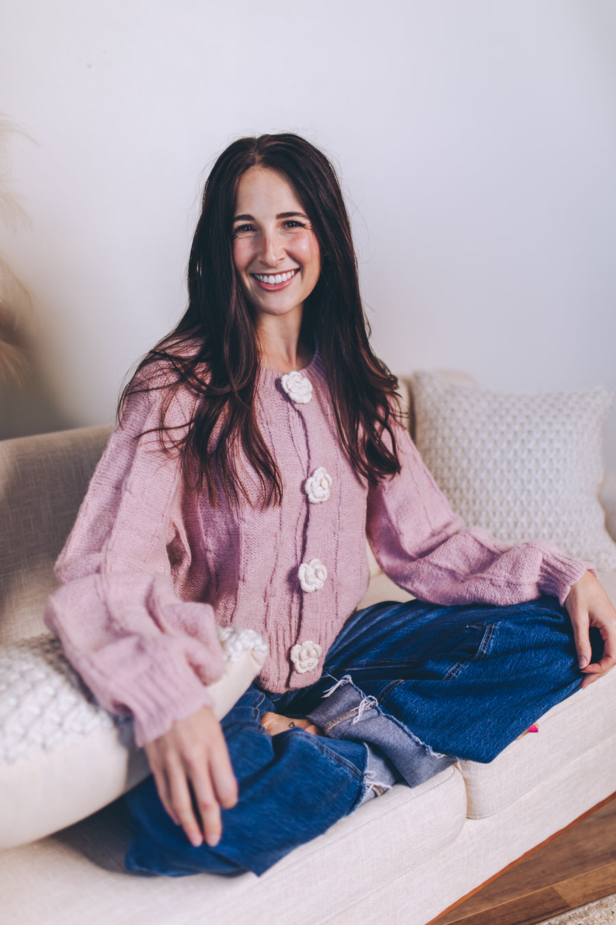Add a splash of fun to your wardrobe with this Floral Button Cropped Sweater Cardi. Featuring a playful floral pattern and a flattering round neck, this knit cardigan is perfect for layering. The ribbed hem and long sleeves keep you cozy while the cropped length adds a trendy twist. Ideal for brightening up any outfit with a touch of charm!