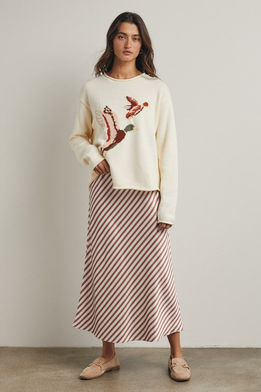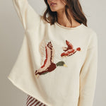 Spread your wings with our Flying Duck Duo Knit Sweater—a cozy layer that brings whimsical charm to your everyday wardrobe. Featuring a playful duck motif in a soft, breathable knit, this sweater pairs perfectly with jeans, skirts, or your favorite casual bottoms. Whether you're channeling your inner waterfowl enthusiast or just looking for a conversation-starter piece, this sweater delivers comfort without taking itself too seriously. Perfect for cool-weather adventures and those moments when you need a little extra personality in your closet.