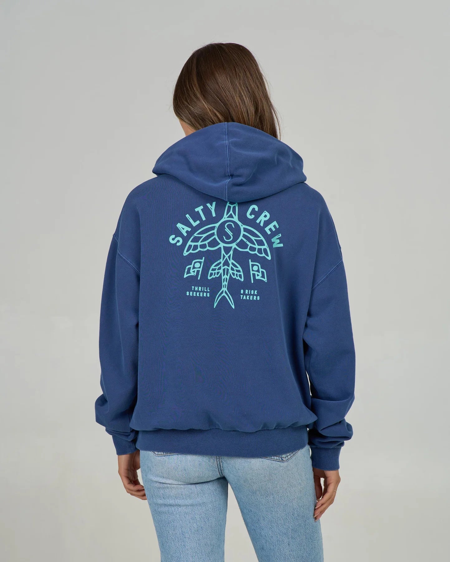 Embrace that laid-back, oversized vibe with the Flying High Hoody. This vintage-washed essential features a cozy kangaroo pocket perfect for keeping your hands warm or stashing your essentials. Bold screen prints on the chest and back body add character and style. Whether you're lounging at home or catching waves with friends, this hoody delivers comfort with personality. A wardrobe staple that works as hard as you do.