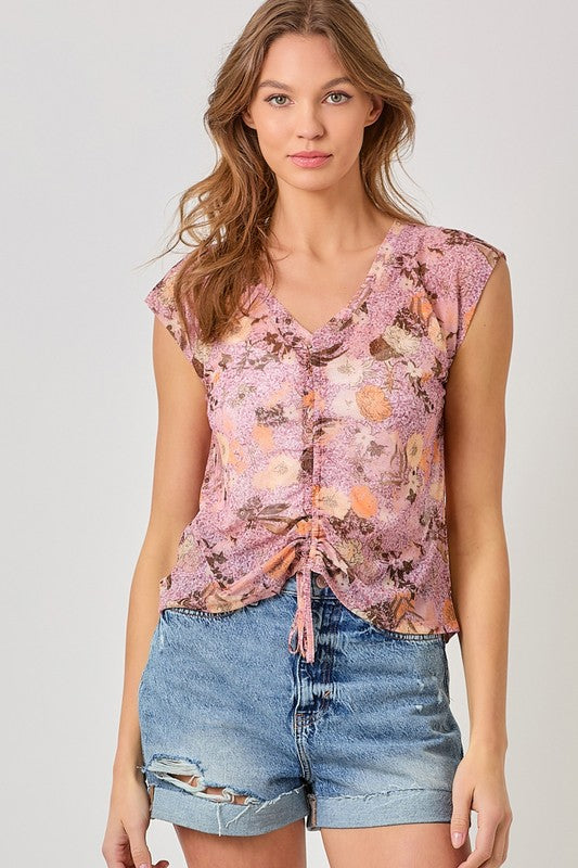 This Front String Printed Mesh Top features a flirty V-neckline and short cap sleeves that add a touch of charm. The ruched front with a drawstring lets you customize your look, making it perfect for playful days and fun nights. Lightweight and breathable, it’s a stylish way to stay cool and confident wherever you go.