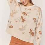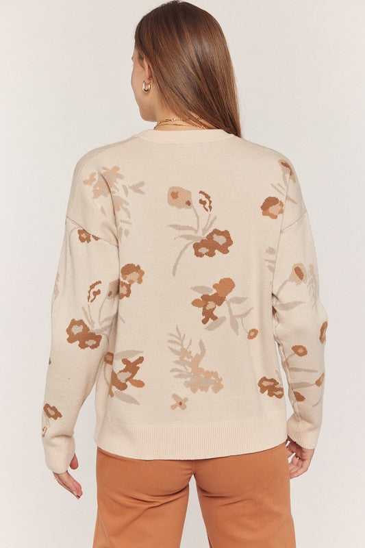 Bring joy to your wardrobe with this Fun With Floral Jacquard Sweater. Featuring an all-over floral print and a relaxed fit, it offers both comfort and vibrant style. Perfect for brightening up any casual day with a playful touch.