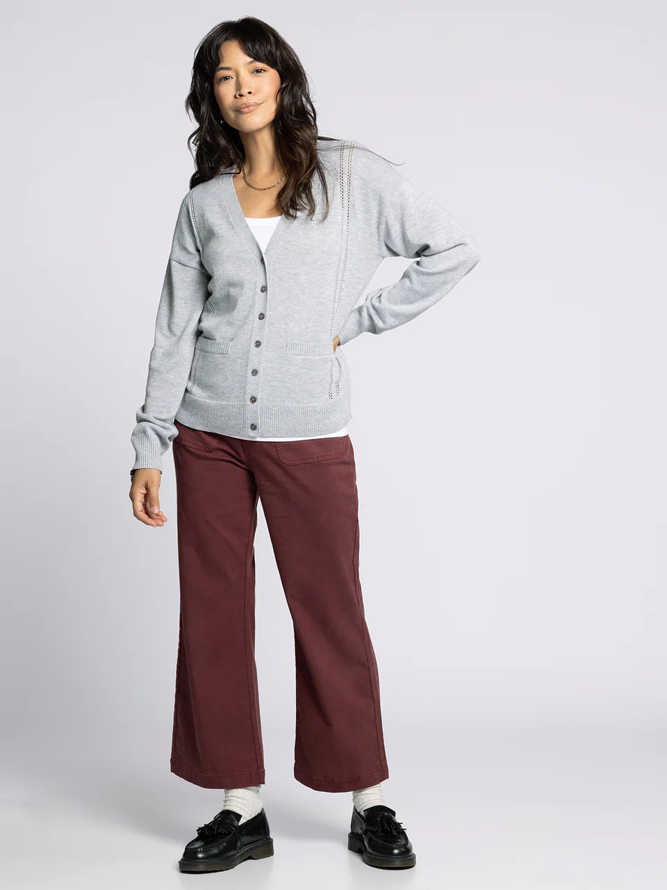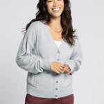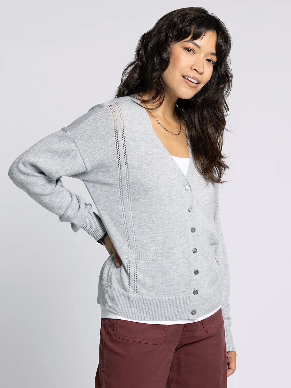 A closet staple, this cotton blend cardigan features a button up front, decorative pointelle stitching, plus ribbing at the cuffs and hem. Pair it with your favorite jeans for a cool, casual look.