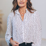 Elevate your look with the Geo Print Tie Detail Blouse, featuring a fun geometric pattern and a charming tie detail that adds a touch of whimsy. Lightweight and breezy, this blouse keeps you comfortable while turning heads. Perfect for pairing with your favorite jeans or skirts for a playful yet polished vibe.
