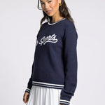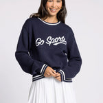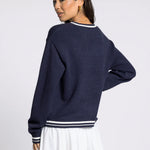 Sporty and chic, knit in our best selling nylon blend yarn and featured with athletic-like stripes around neckband & cuffs to make this sweater more sporty, perfect for sitting in the bleachers to cheer on your favorite team.