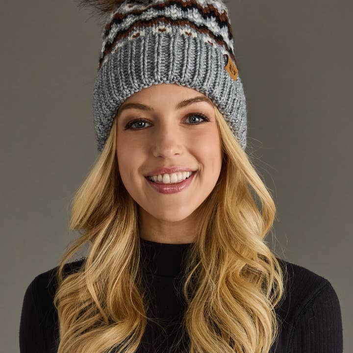Gray, Brown & White Winter Pattern Pom Hat (Panache)