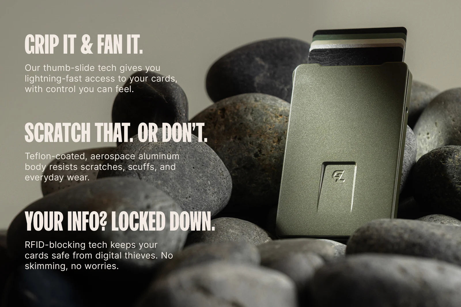 Not your average navy. This deep, matte blue brings utility and edge in equal measure. Built from aerospace-grade aluminum with a Teflon finish, it’s designed to stand up to the jobsite, the gym, or the weekend. RFID-blocking. SlideTech™-ready. Backed by the Groove Guarantee®. It’s sleek, it’s tough—and it’s ready for whatever comes next. Groove Life®. Built for Adventure™.