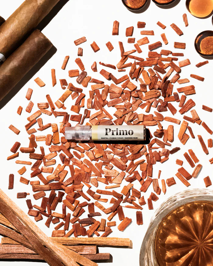 "Santal" refers to Santalum, a genus of the family of Sandalwood trees. The Santal note in Primo is warm, woody, and smooth which creates a truly premium, long-lasting experience.