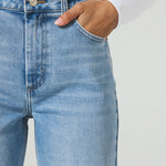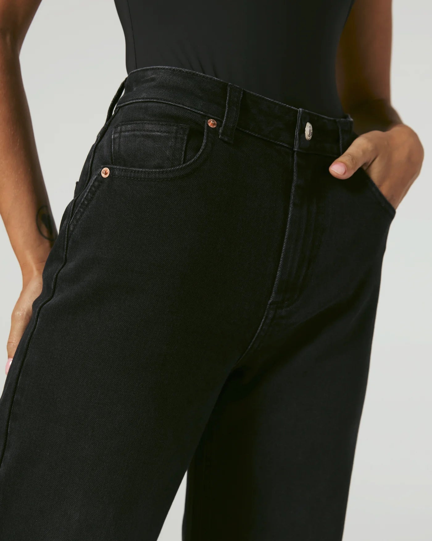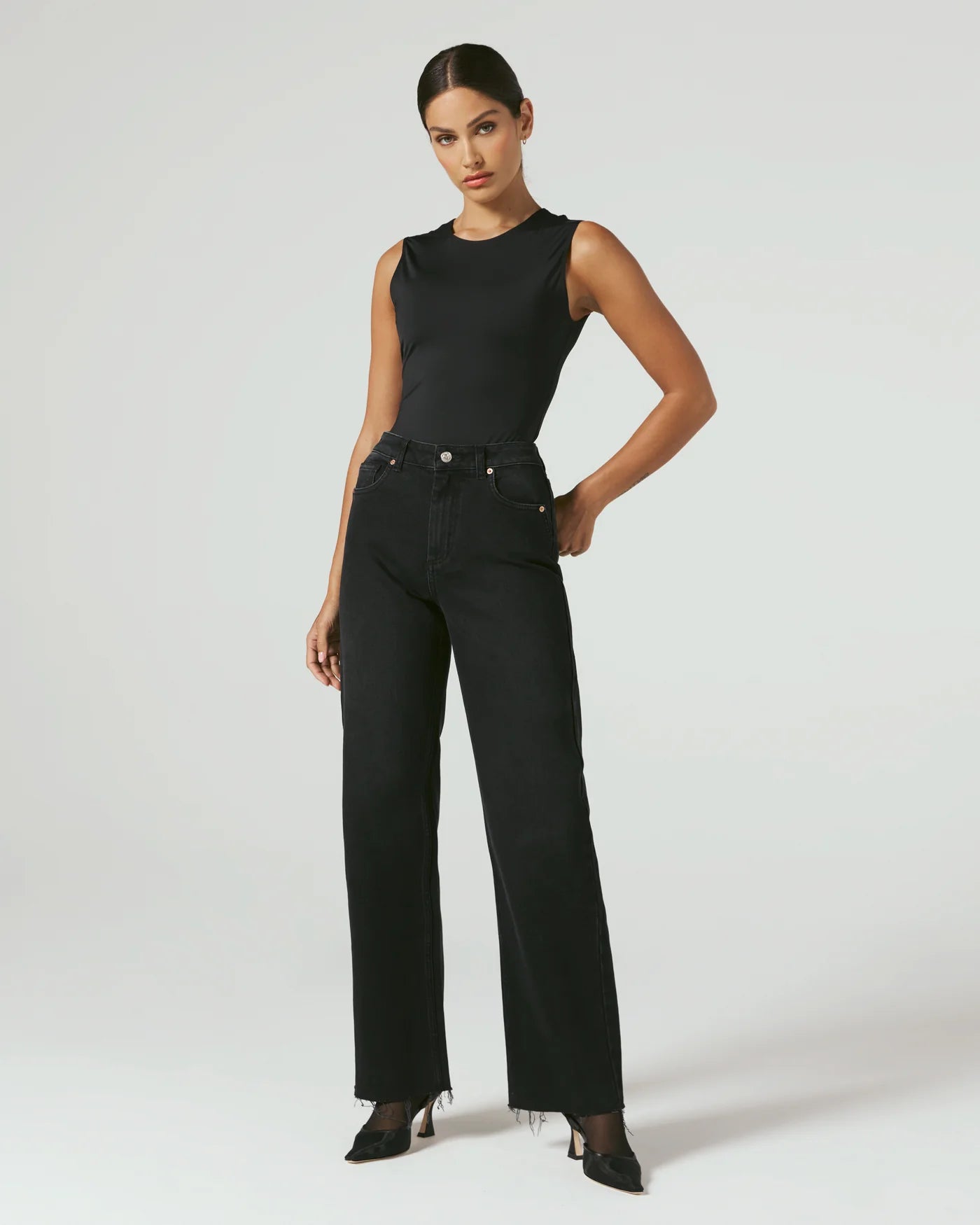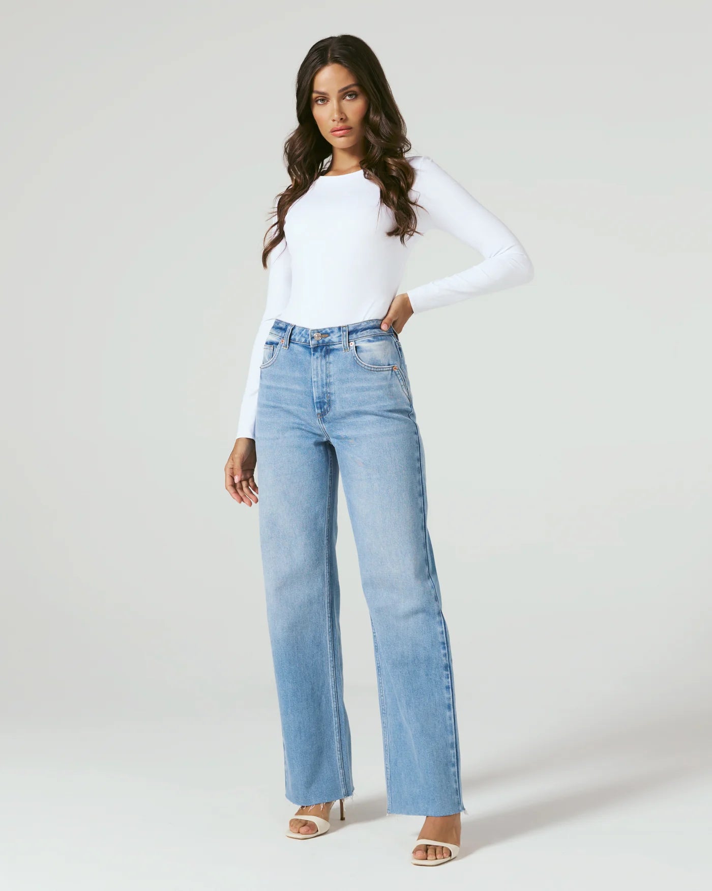 A wide-leg, high-rise jean featuring side seam detailing, logo hardware, and a leather logo patch. Delivering both comfort and sophistication, this staple pairs perfectly with