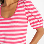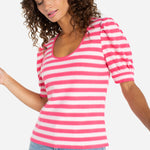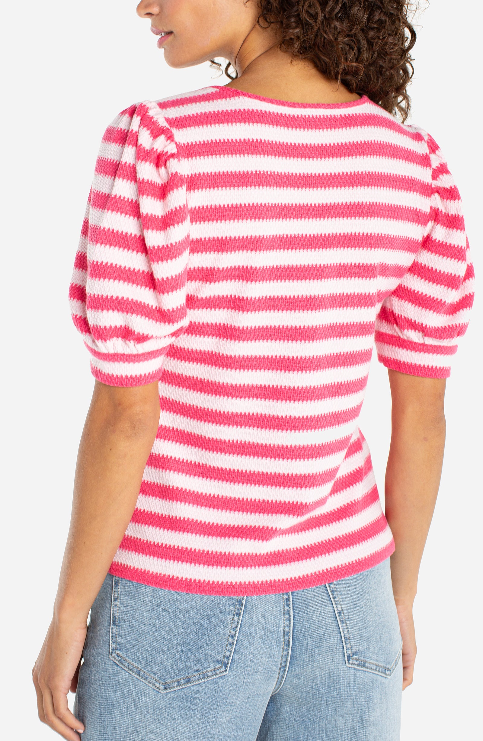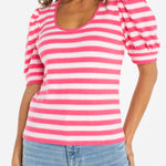 The Liverpool Half Sleeve Scoop Neck Knit Top features a flattering scoop neckline and soft puff sleeves that add a feminine touch to its classic silhouette. Designed in a sweet pink and white stripe, this lightweight knit offers comfortable stretch and an easy, polished fit. Perfect for pairing with your favorite denim or skirts, it’s a versatile piece that transitions effortlessly from casual days to dressed-up evenings.