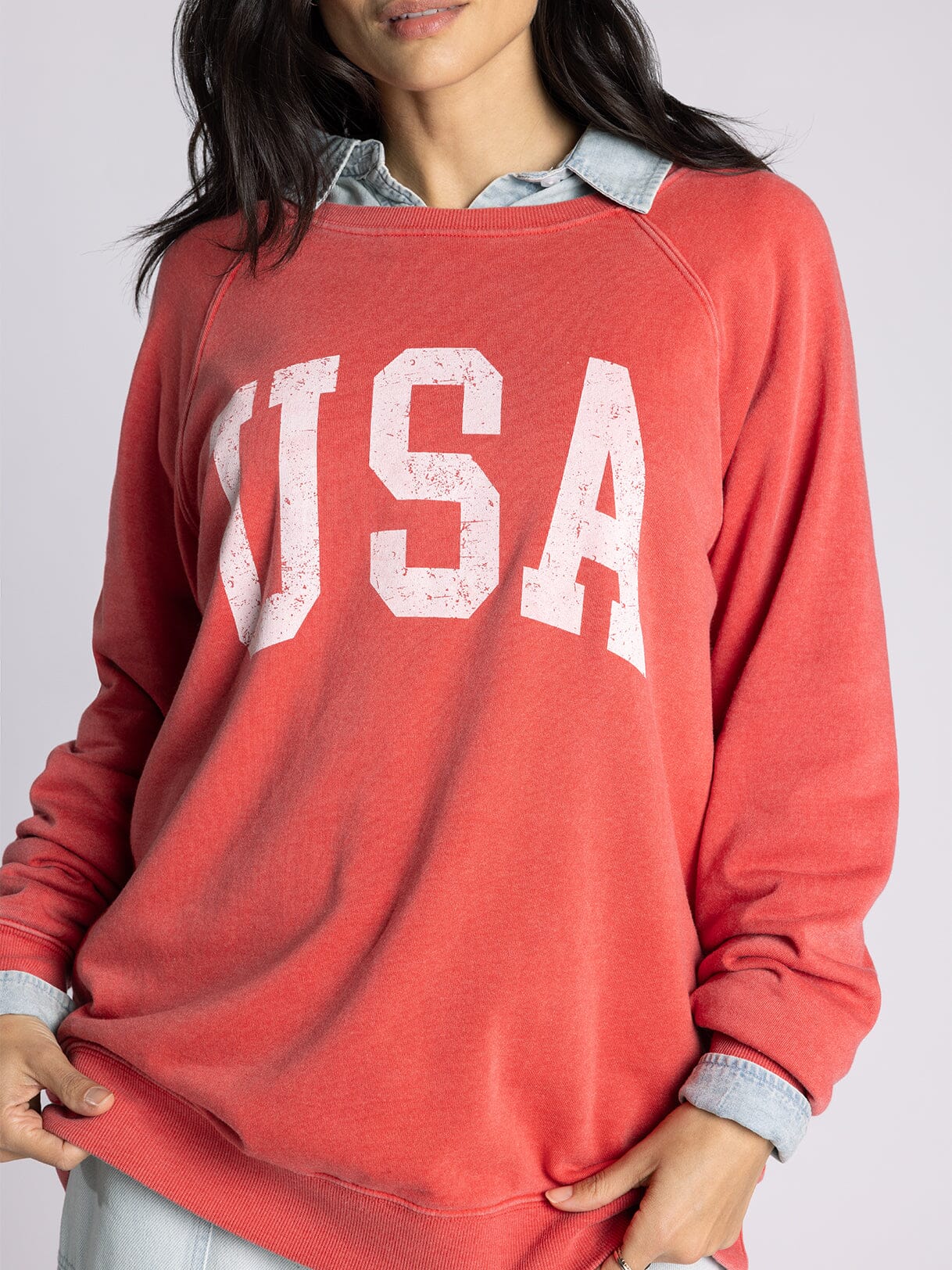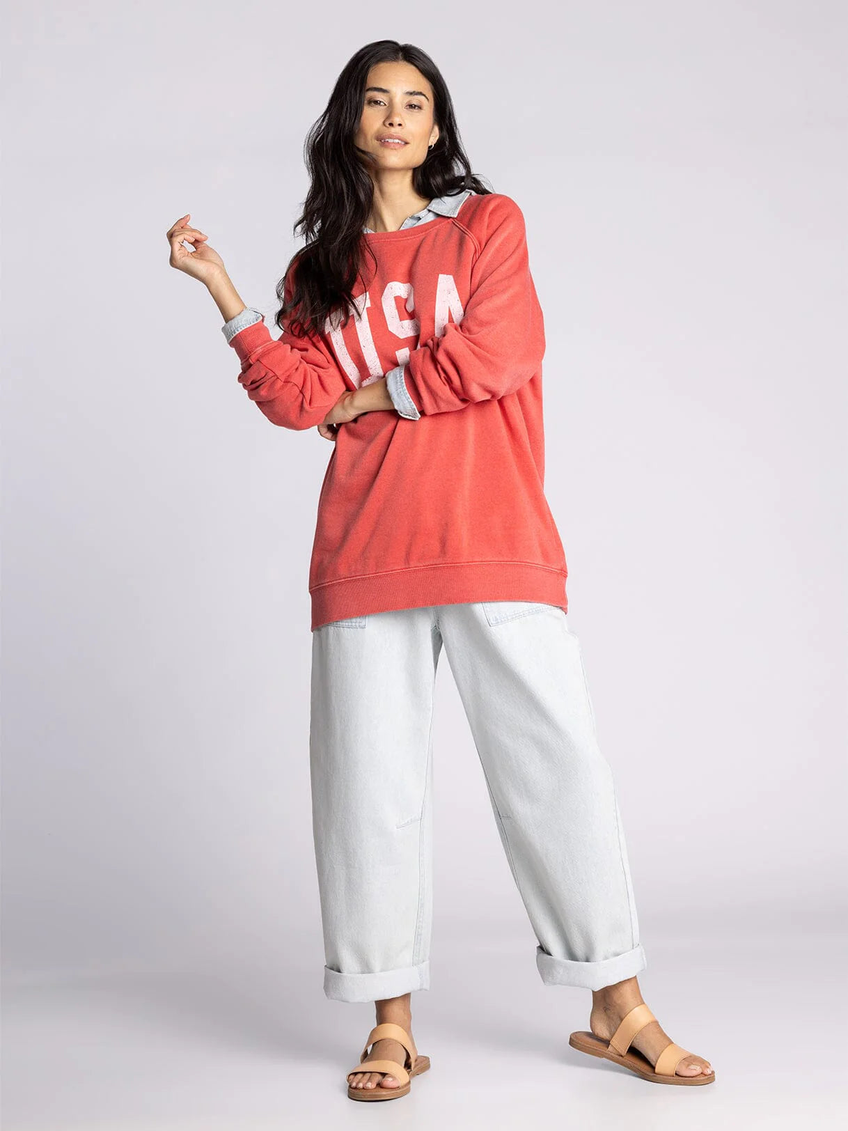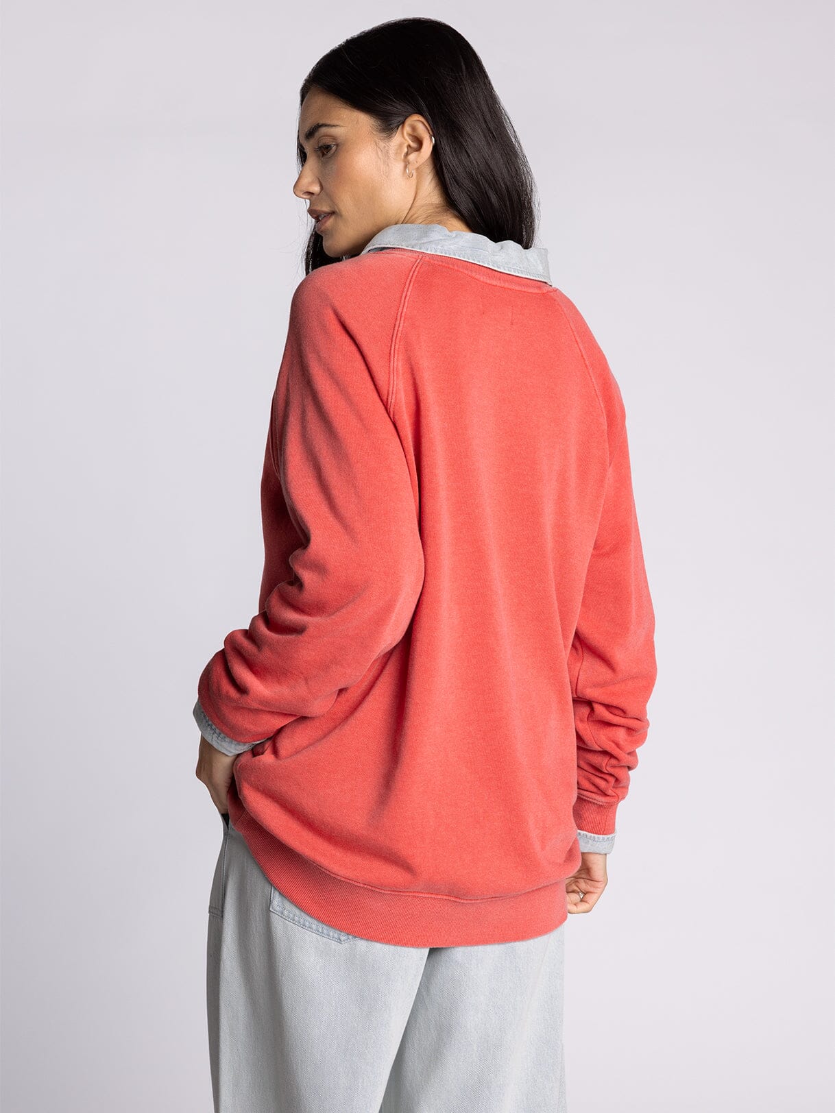 The Hangout Top features a relaxed crew neckline perfect for casual everyday wear. Raglan sleeves provide comfortable movement and a flattering silhouette, while ribbed hem and cuff details ensure a polished finish that holds its shape. An effortless staple designed for laid-back style and all-day comfort.