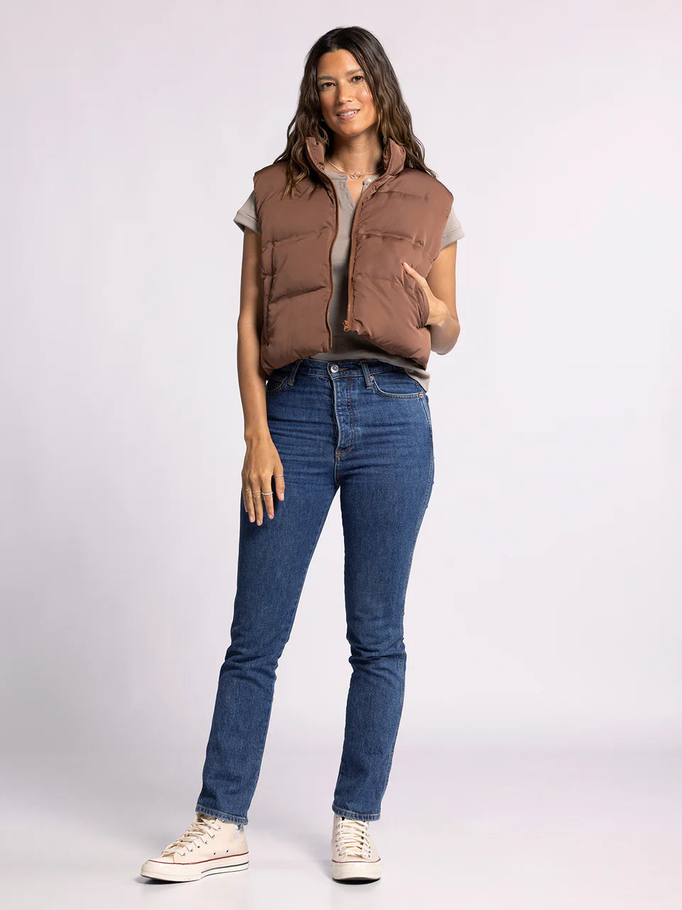 This essential puffer vest is so cool for fall, featured in a super puffed, quilted design, cropped silhouette and dual side pockets - ready to layer all season long!