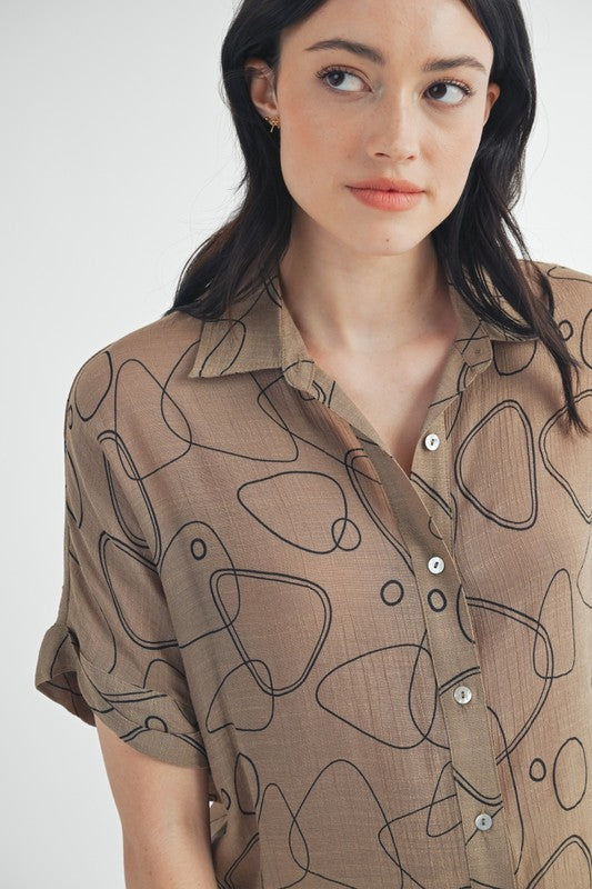 Bring some fun to your wardrobe with the Jealous of Geo Button Down. Featuring a lively geo print and a classic short sleeve collar, this shirt is perfect for those who love a pop of pattern with easygoing style. Whether you're out for a weekend adventure or just hanging with friends, its breathable fabric keeps you cool while turning heads. Playful and sharp, it's your new go-to for effortless flair.