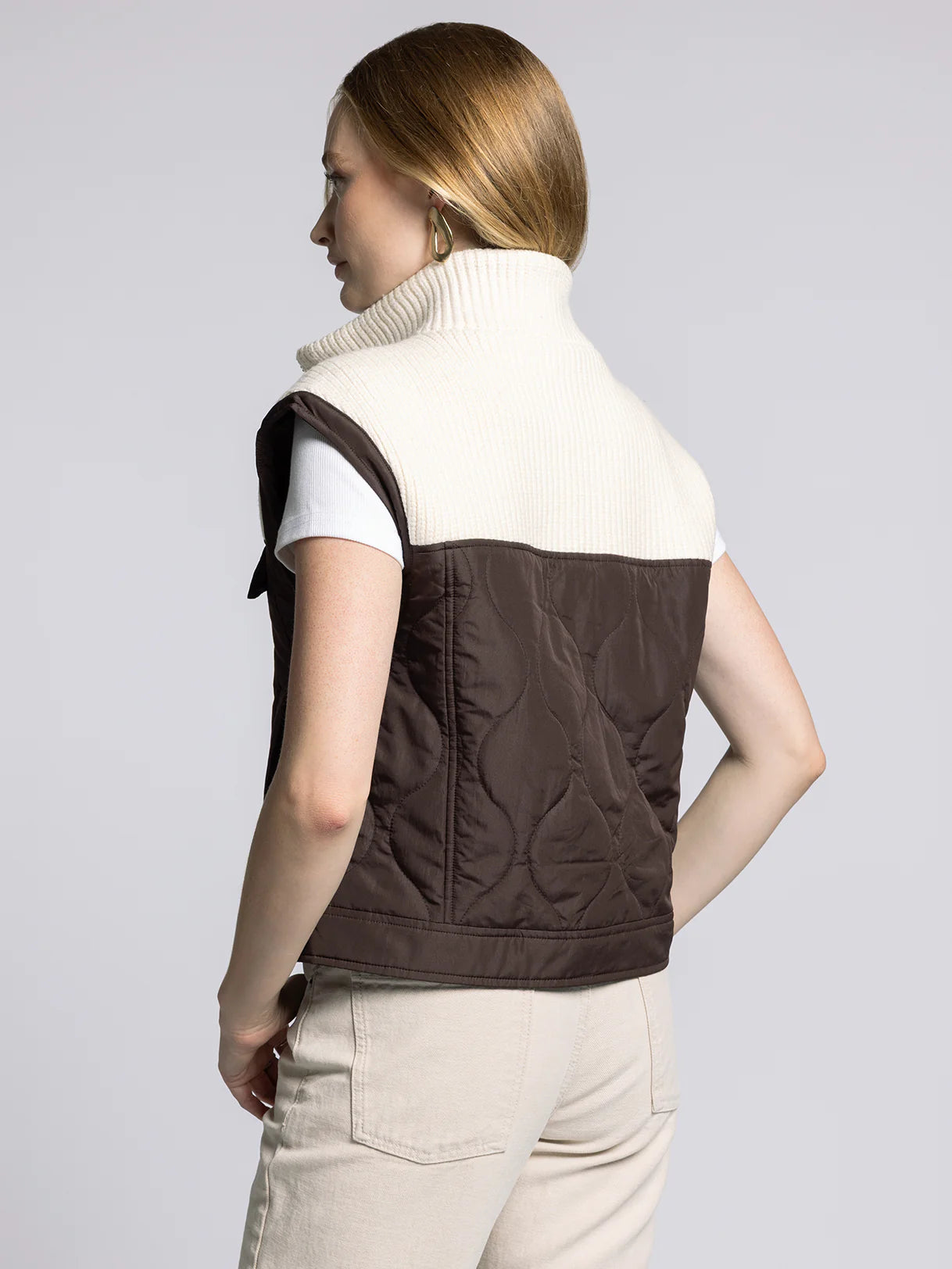 Stay cozy and cool in the Jordette Vest! Featuring a trendy mock neck and quilted design, this vest locks in warmth with both snap buttons and a full zipper front. Practical dual chest pockets add space for your essentials, making it perfect for layering with a playful twist.