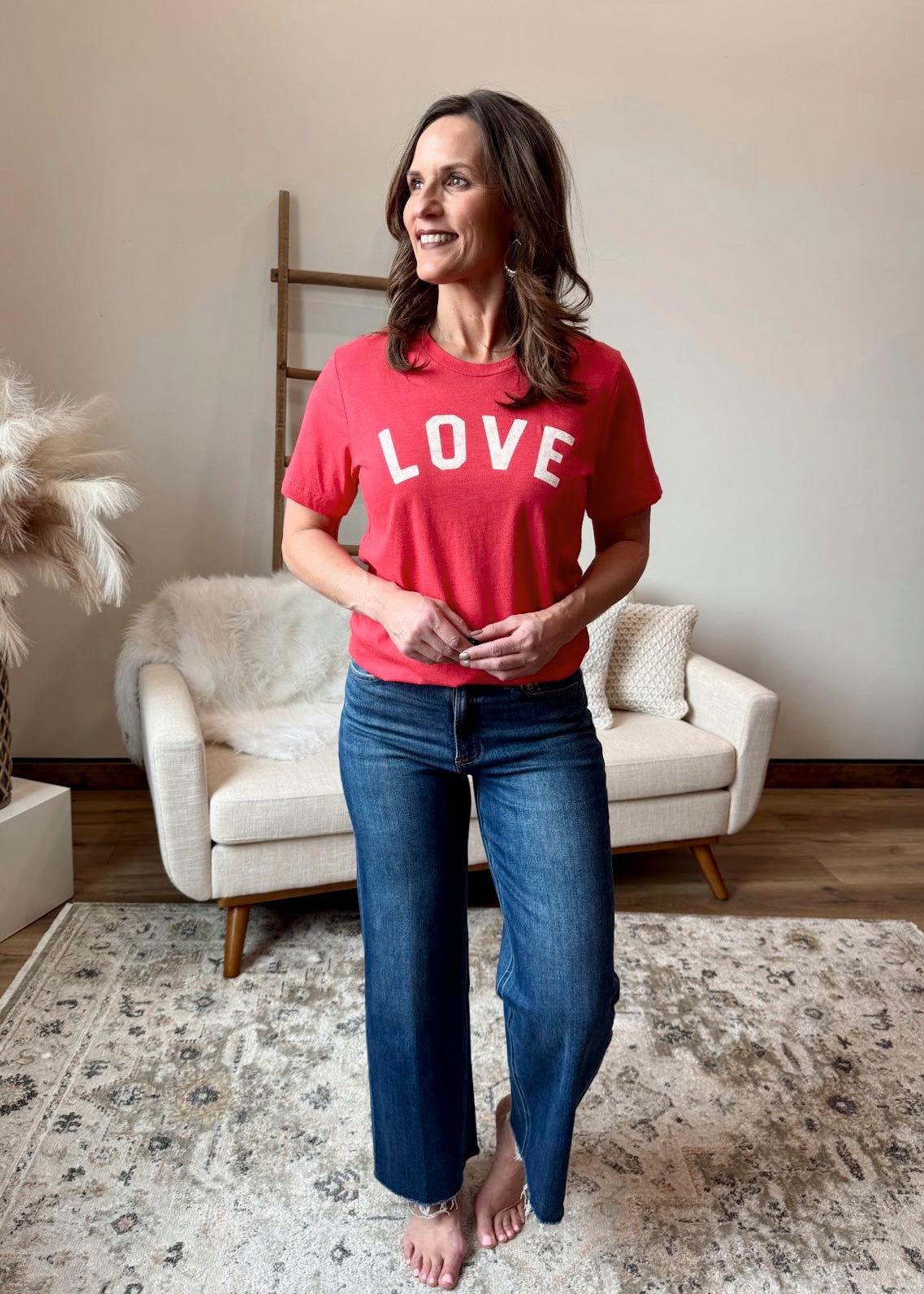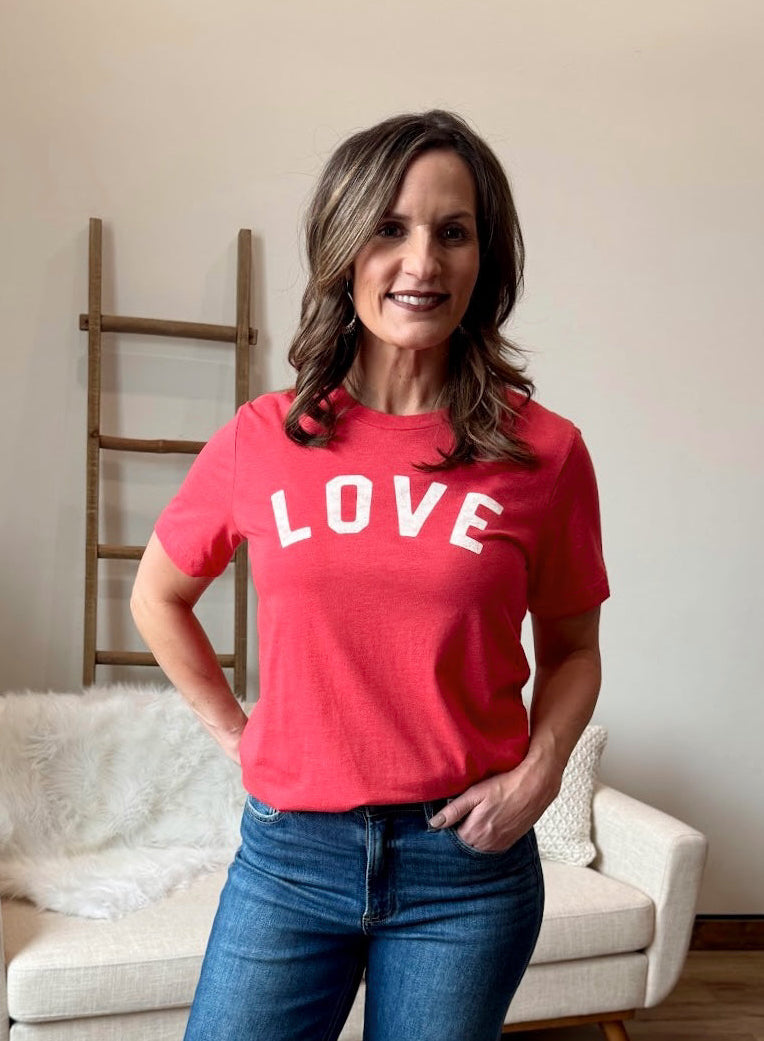 Get ready to spread love all year long with our "LOVE" Graphic Tee! Perfect for both men and women, this tee features a relaxed fit and unisex sizing for a comfortable and stylish look. Wear it on Valentine's Day or any day to show off your loving spirit.
