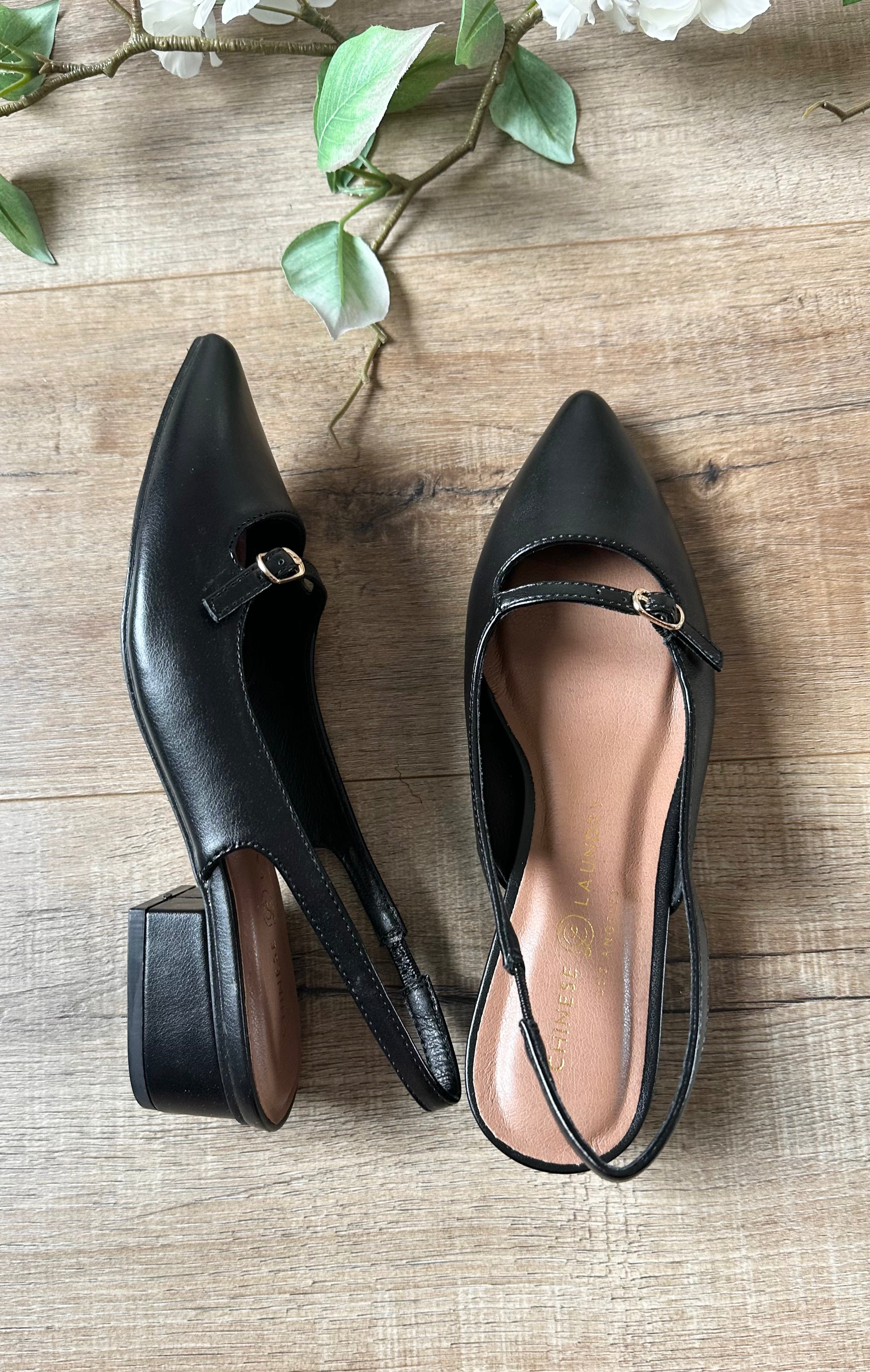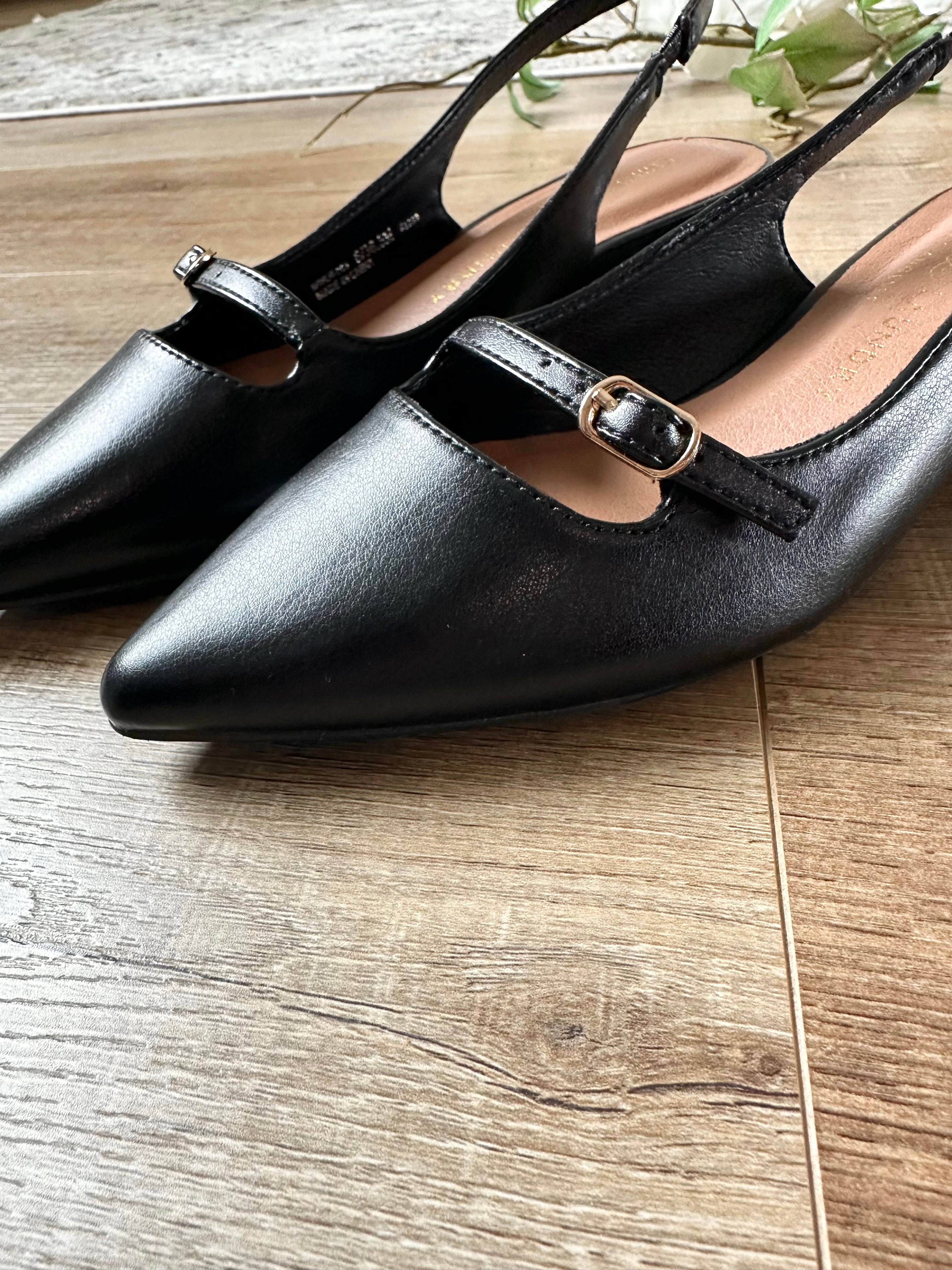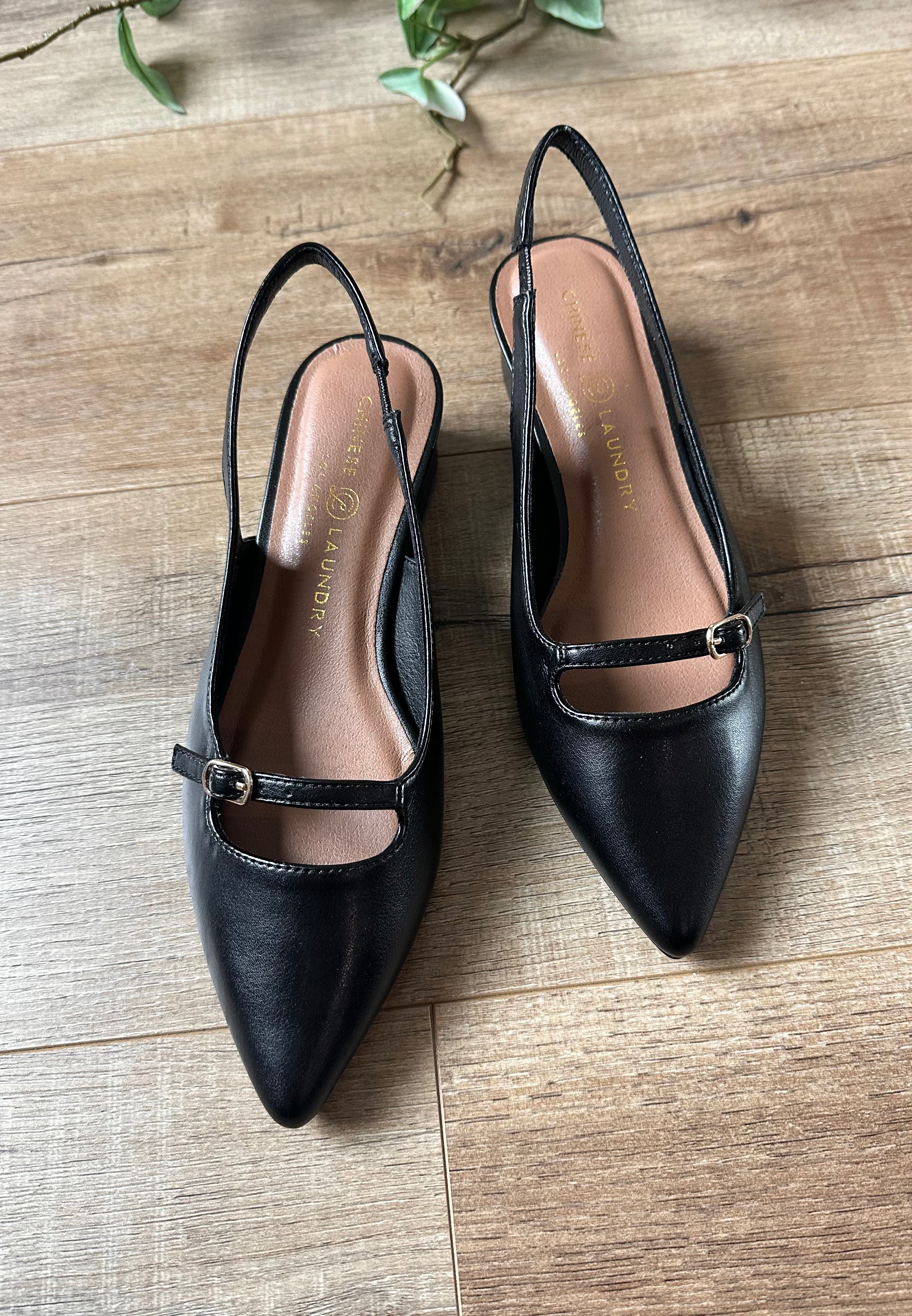 Meet Maude, the slingback heel with attitude. It's got the sleek sophistication of a pointy-toe flat, with an elasticized slingback strap that whispers, "I'm here for a good time, not a long time." Cloaked in a fabric that's as versatile as your Friday night plans, this shoe doesn't just walk into the room—it makes an entrance.