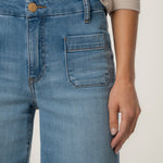 These high-rise wide leg jeans feature stylish patch pockets and a versatile medium wash for a timeless look. Crafted from very stretchy material, they offer exceptional comfort and freedom of movement. Effortlessly chic, they’re perfect for dressing up or down.