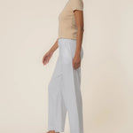 These high-rise pants feature a wide straight leg for a clean, elevated silhouette. A front pleat adds tailored detail and subtle structure, while the linen-mixed material keeps the look lightweight and breathable. Designed for effortless styling, these pants offer a relaxed yet refined feel that works for both casual and polished outfits.