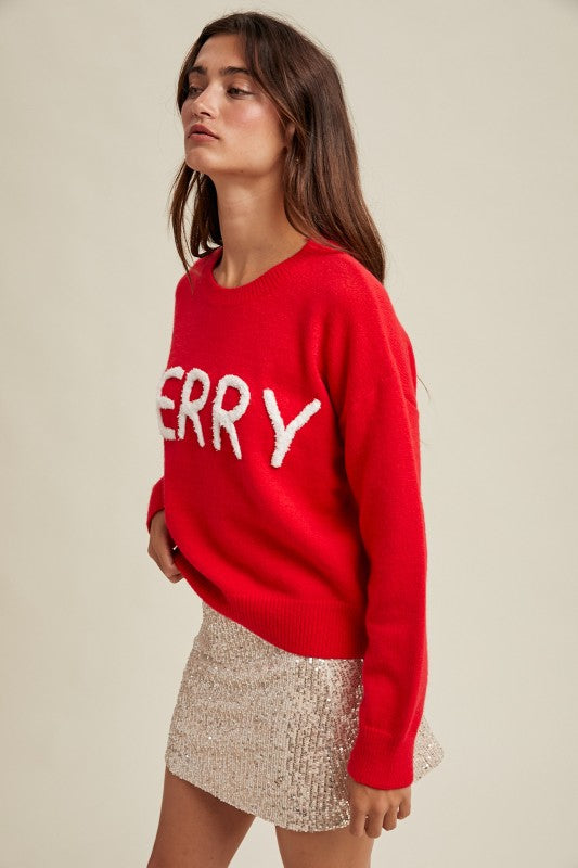 Cozy up your holiday style with the "Merry" Fluffy Patch Sweater. This relaxed crop sweater features soft, fluffy patches that add festive fun and warmth to your look. Perfect for spreading holiday cheer while staying comfy at parties or casual days. Embrace the season with a playful touch!