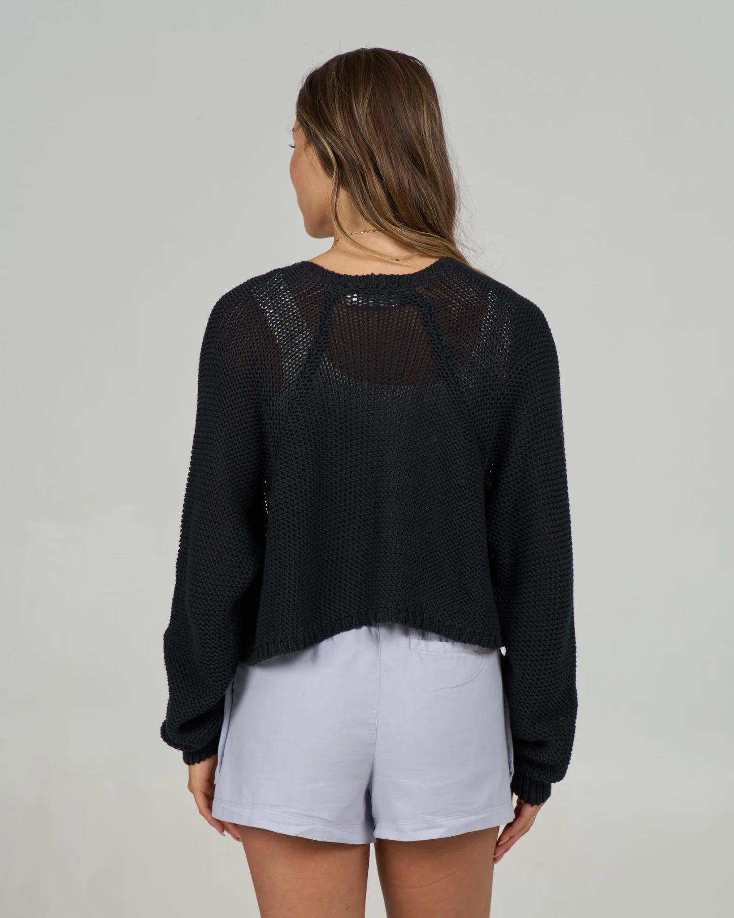 Layer up with the Navigator Cardigan, where breezy style meets practical comfort. This cropped open-front design pairs effortlessly over your favorite tees and tanks, while elasticated sleeve hems keep things neat and polished. Perfect for those moments when you want just enough coverage without the commitment. Throw it on, tie it up, or leave it flowing—this versatile piece adapts to your vibe.