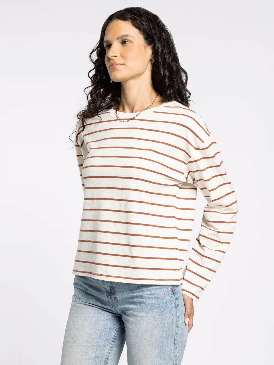 The perfect striped tee from our basics collection, featured in a cotton blend and oversized fit with the perfect amount of drape.