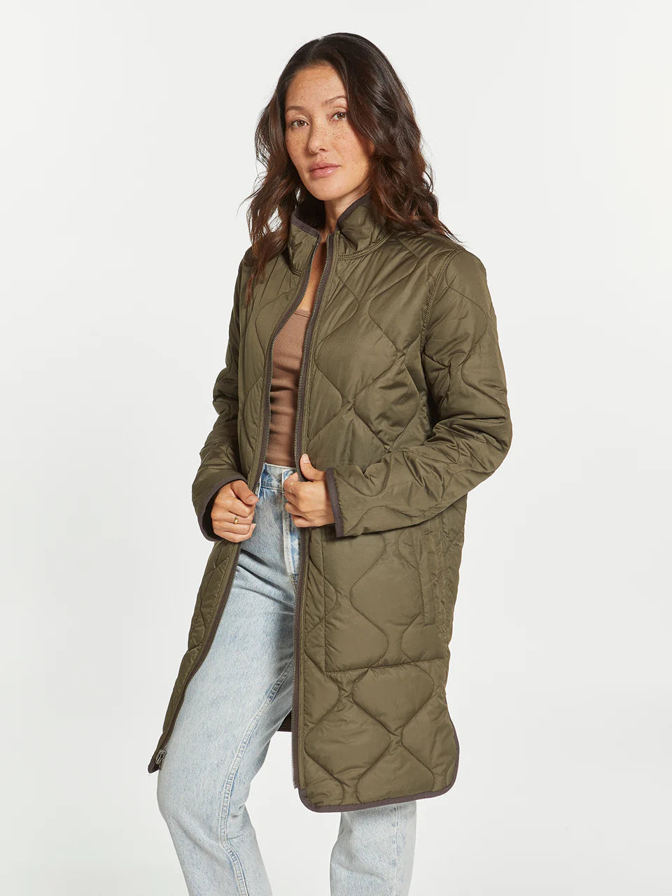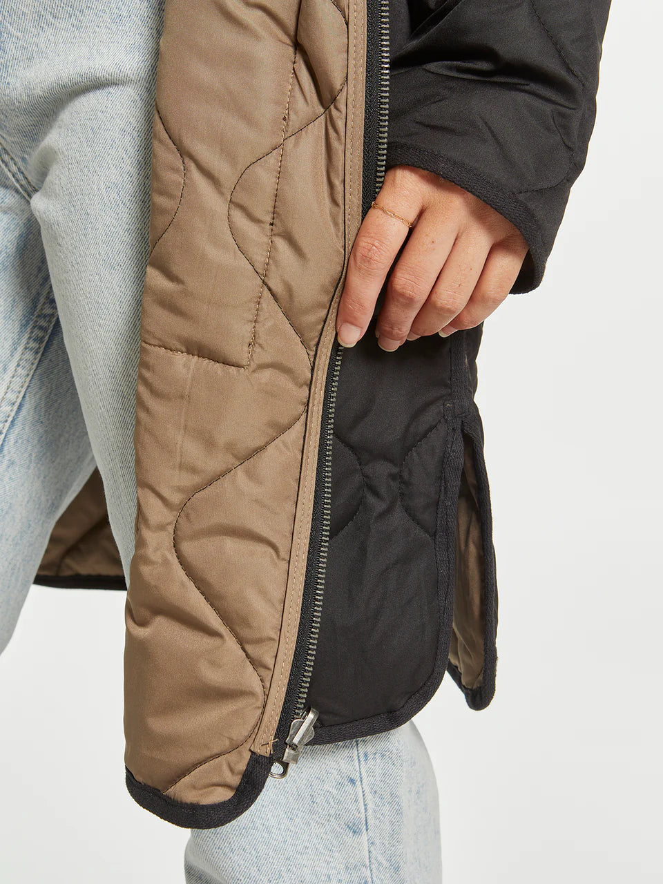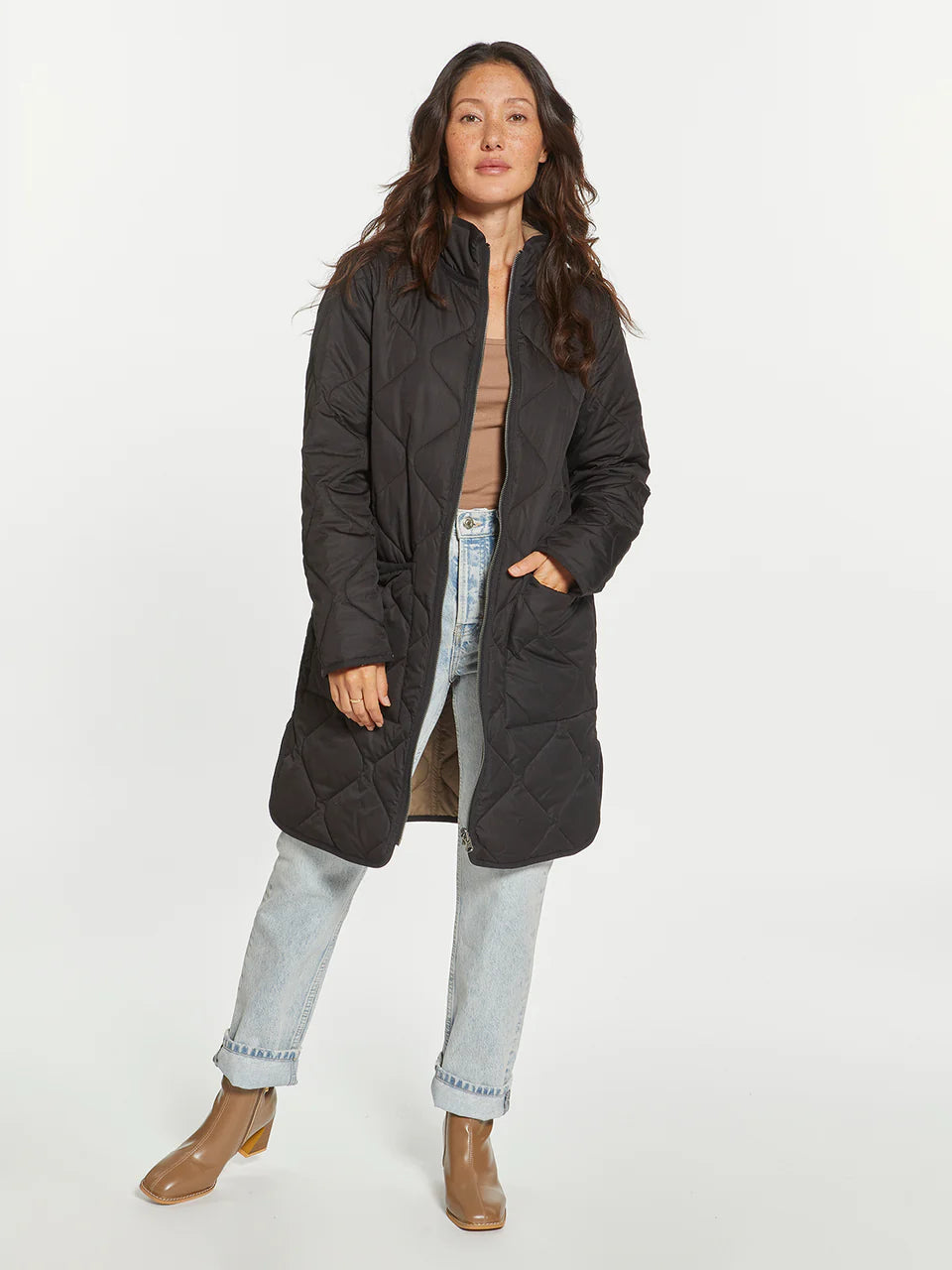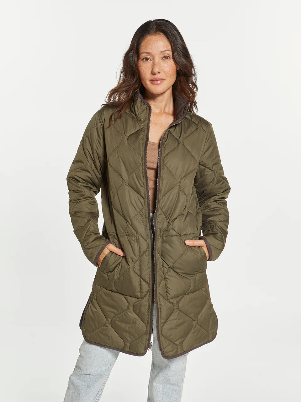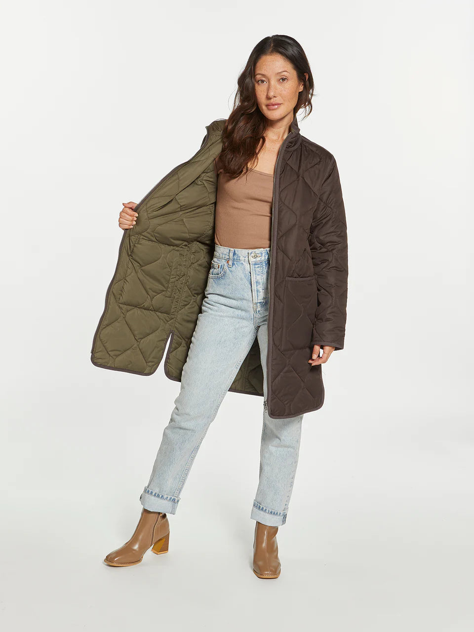 Two coats in one with this long-lined reversible puffer coat. This classic puffer can handle any type of weather! Featuring a zip front closure, dual side box pockets and side vents.