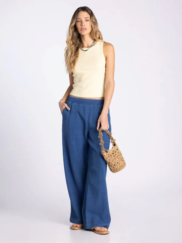 Effortless comfort meets contemporary style with the Novalie Pant. Featuring an elastic waistband for a relaxed fit and a flattering wide-leg silhouette, these pants transition seamlessly from casual days to elevated evenings. Functional side pockets keep your essentials within reach. A versatile wardrobe essential that works as hard as you do.