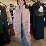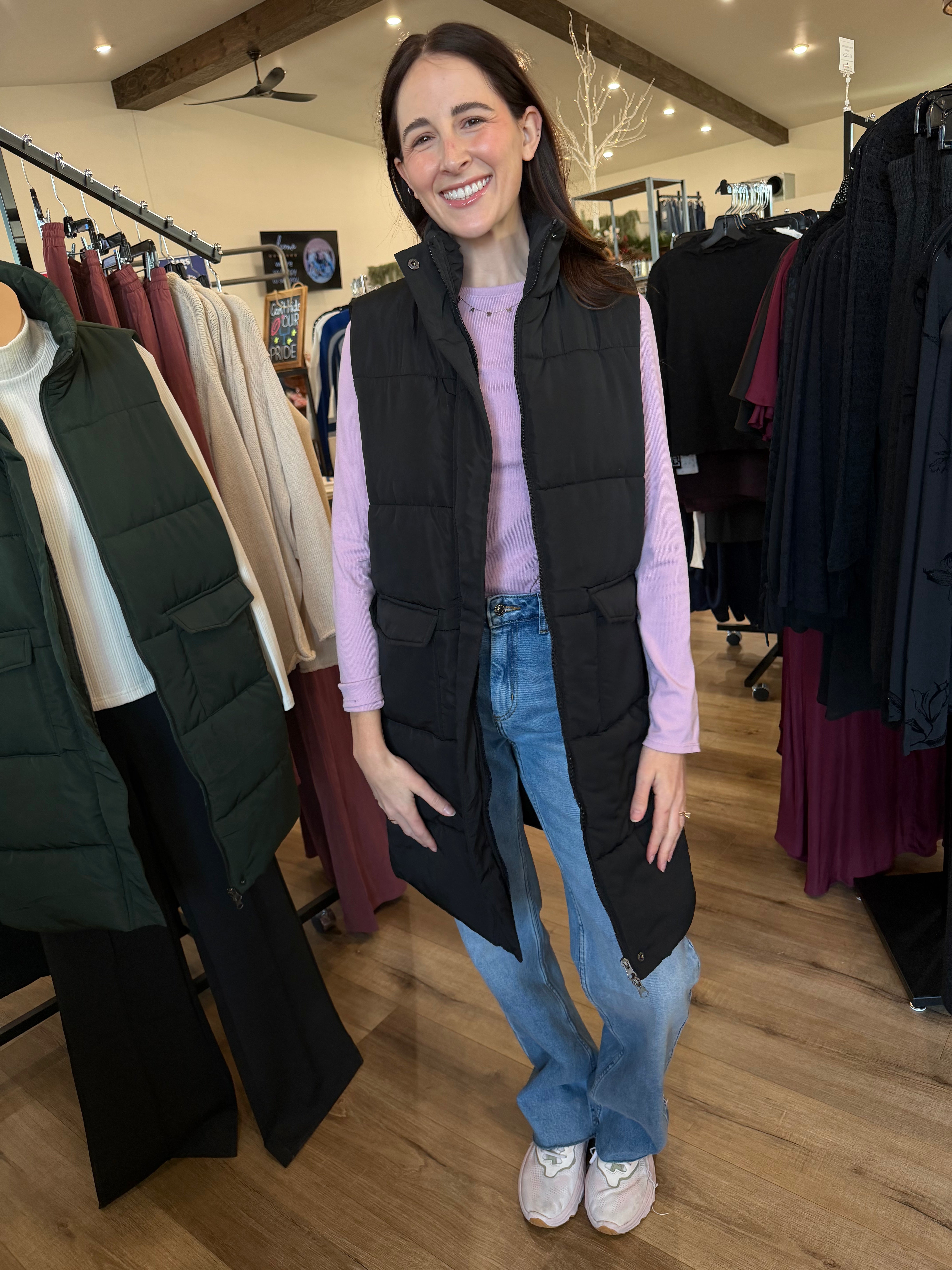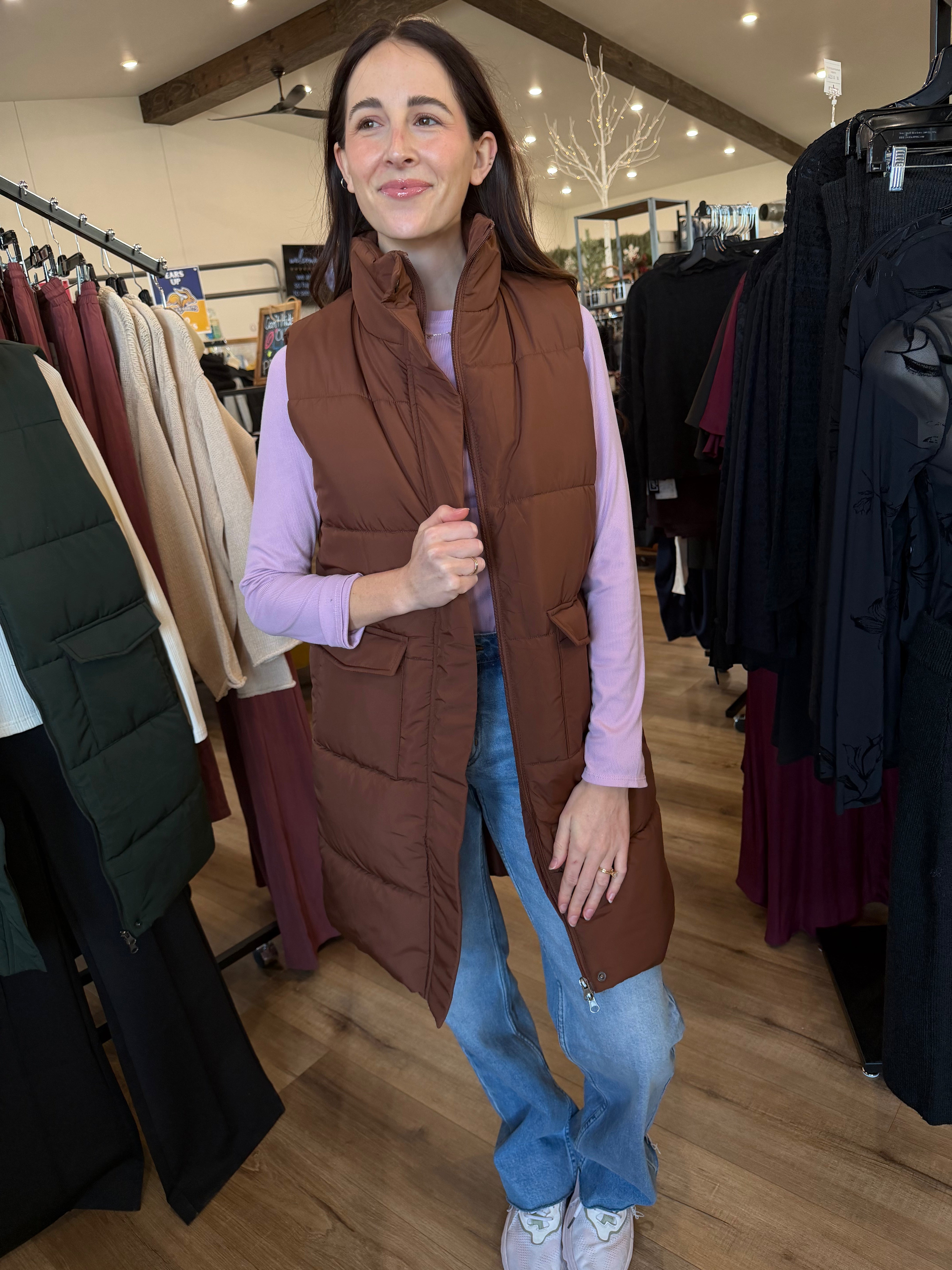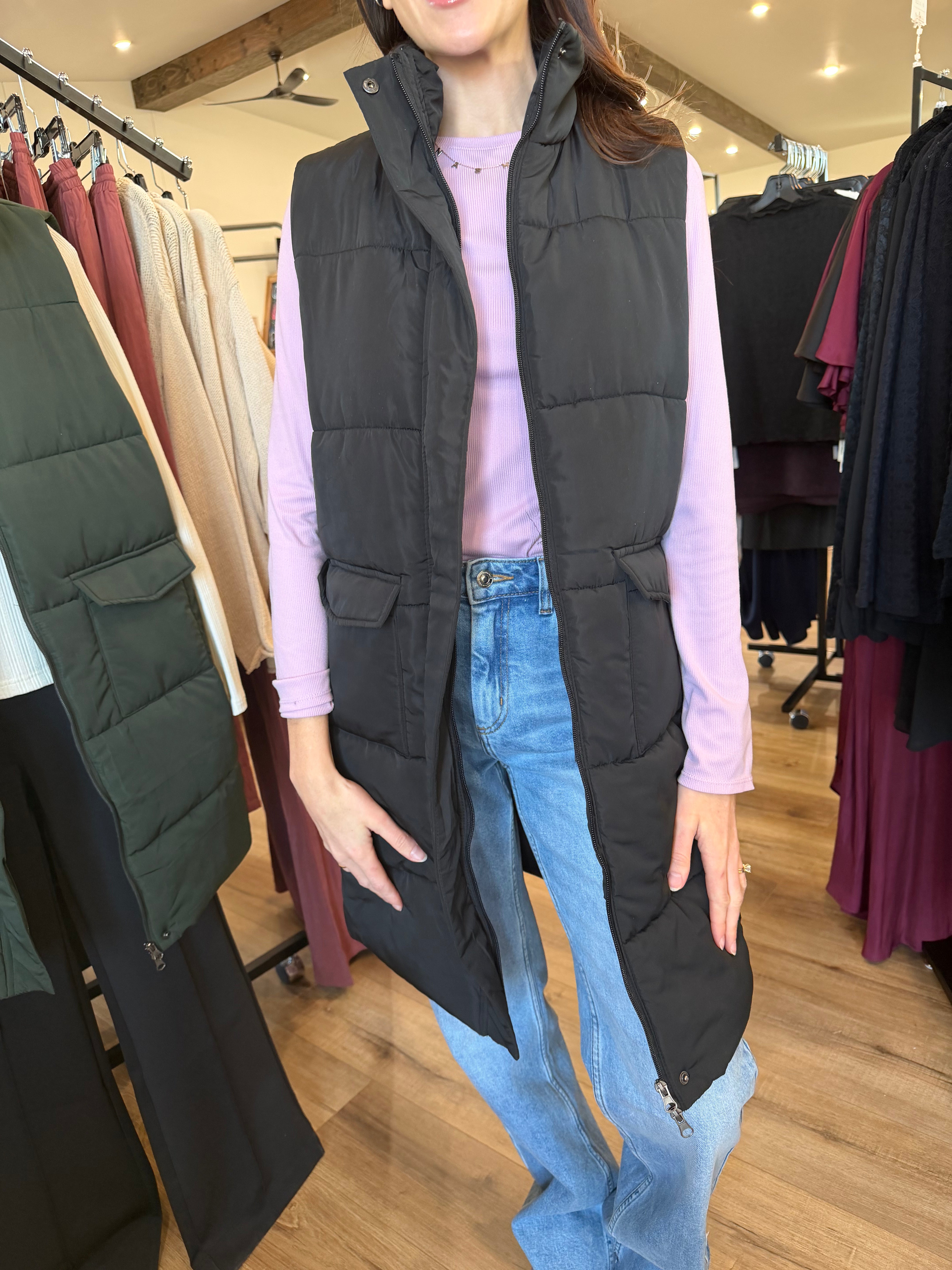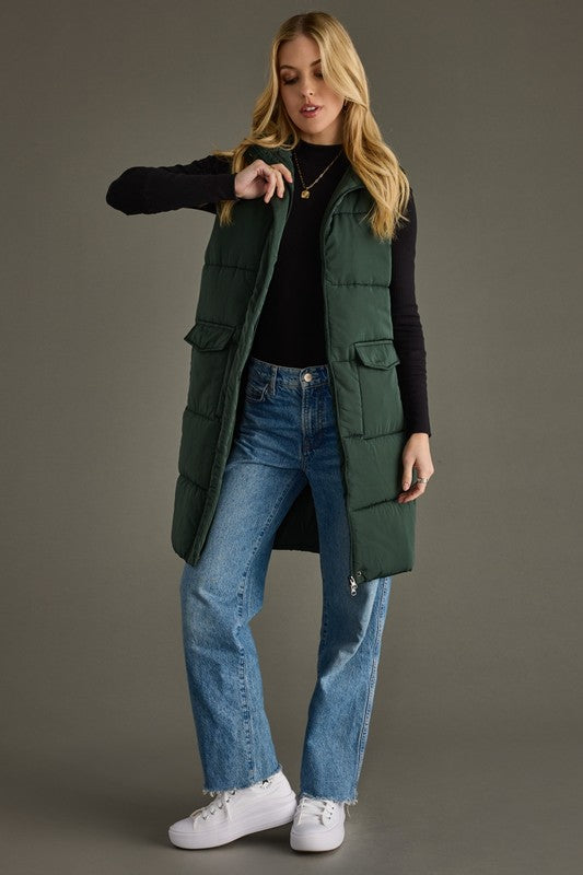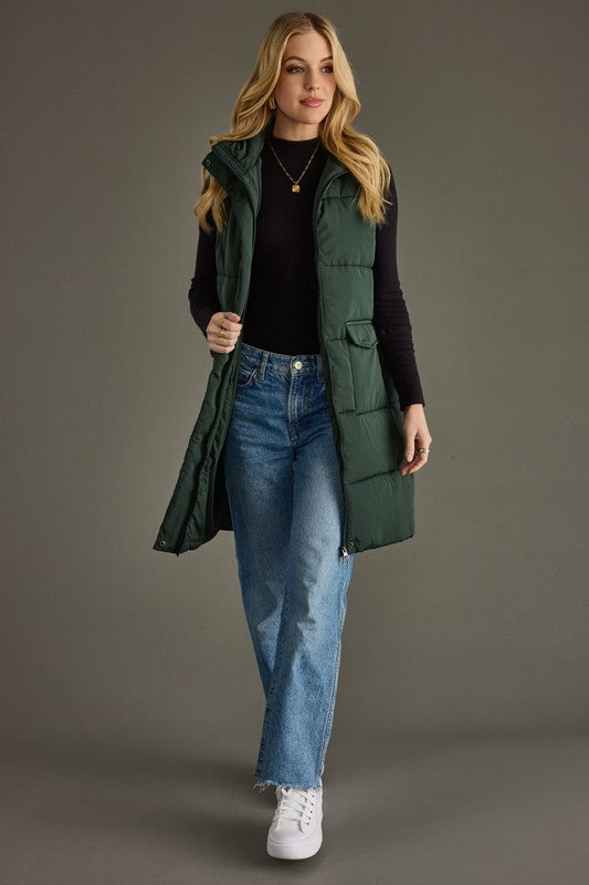 Stay stylish and snug with the Paizley Long Vest! Featuring a fun zipper and snap closure up front, this playful midi-length vest also offers two handy side pockets to keep your essentials close. Perfect for layering and adding a splash of charm to any outfit!