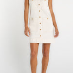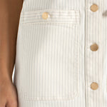 Casual yet chic, this shift dress combines stretch denim with classic nautical stripes for effortless style. Featuring patch pockets and a relaxed silhouette, it’s perfect for everyday wear or weekend outings with a laid-back, polished look.