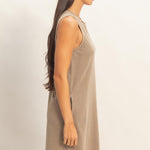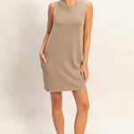 Just because it's casual, doesn't mean it has to be boring. All the love sleeveless mini dress showcases a round neck and an overall straight silhouette ending in a mini hem. The side pockets add practicality. Style with sneakers for a casual vibe.