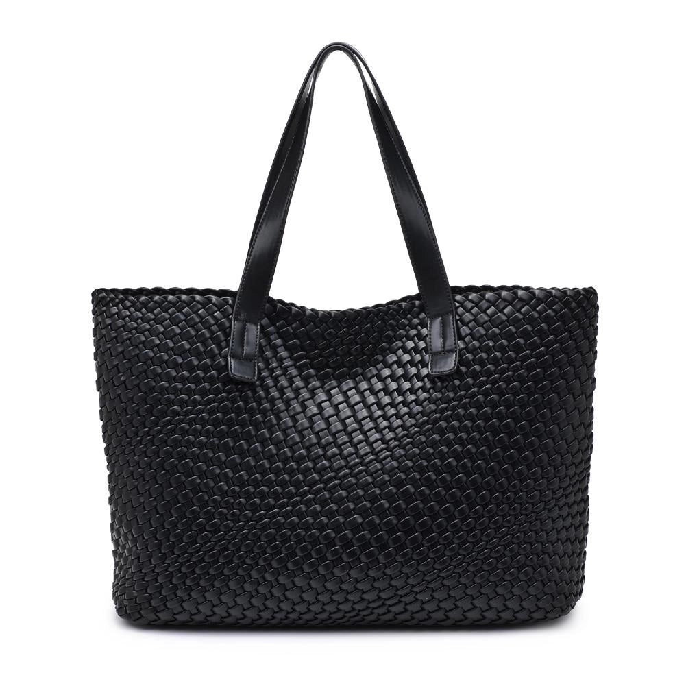 Crafted with intricately woven vegan leather and secured with a magnetic snap closure, it exudes timeless elegance. Its unlined interior is complemented by a removable zip pouch, offering versatility and organization for the modern woman on the go.