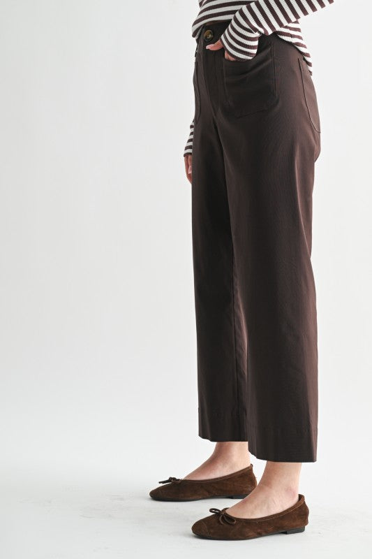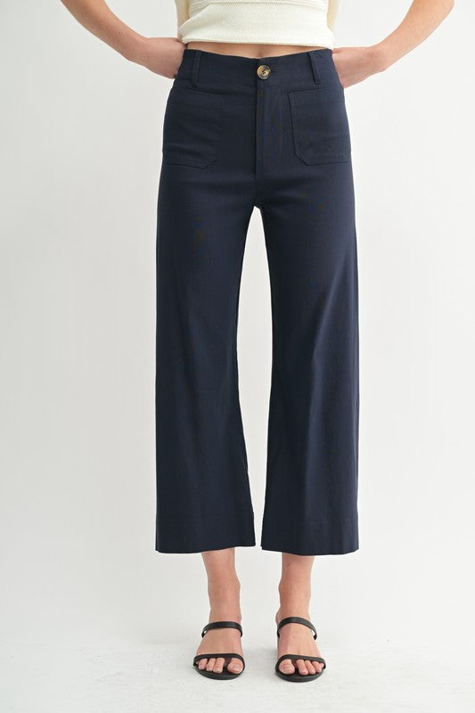 These playful Pretty Pocket Detail Pants feature a trendy cropped length and charming pocket accents. The wide-leg cut adds comfortable movement and a flirty flair, perfect for standing out with effortless style.