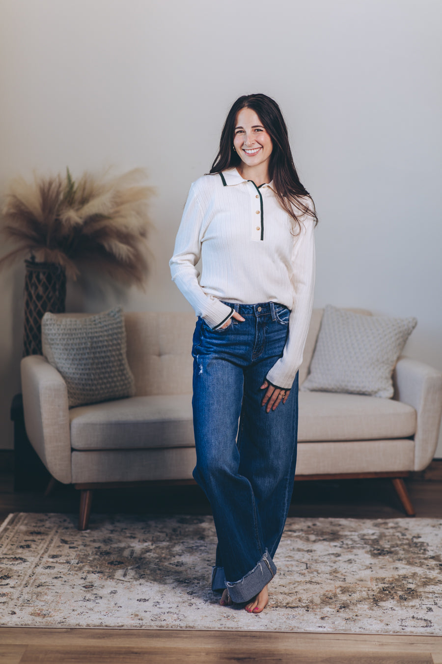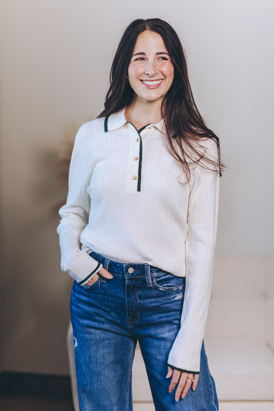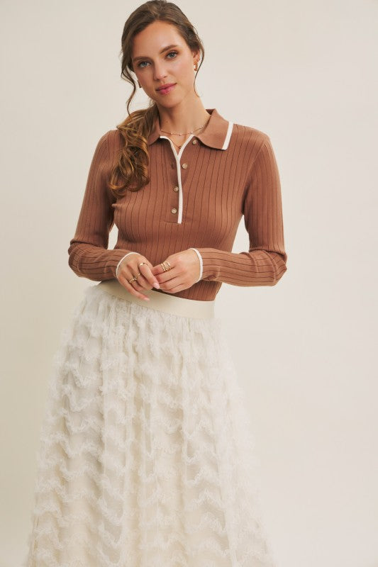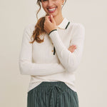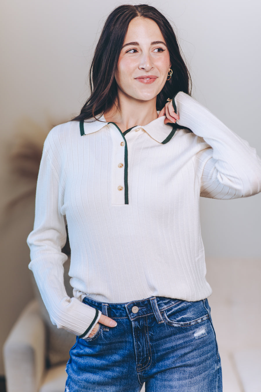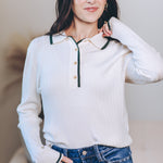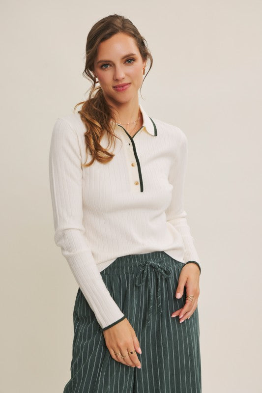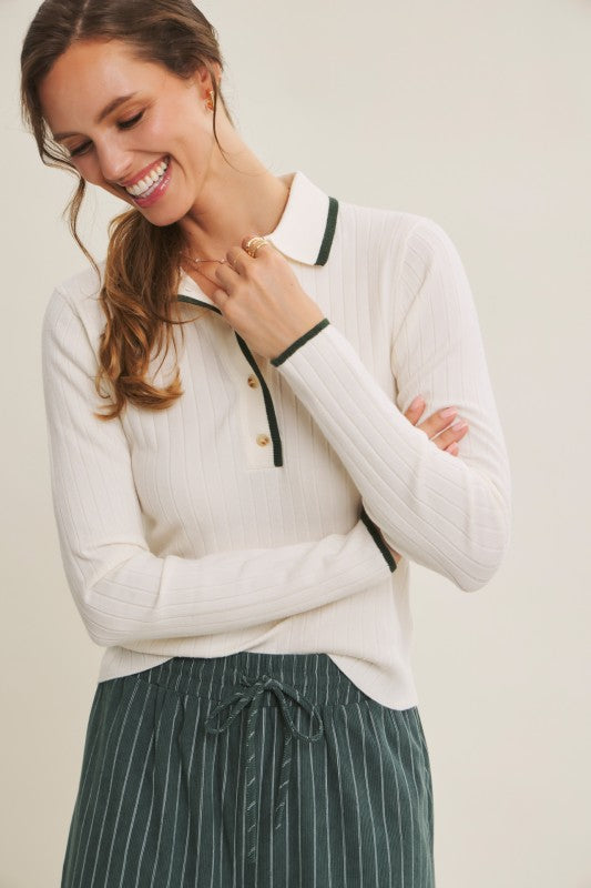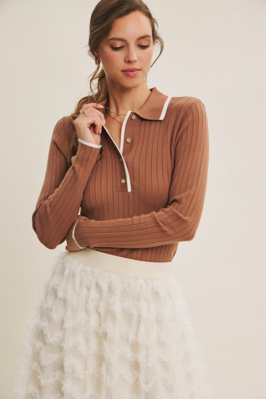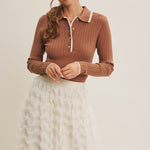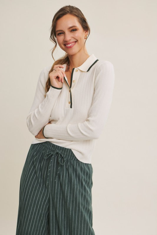 Wrap yourself in cozy charm with the Quietly Elegant Sweater Polo. This super soft viscose blend knit feels like a gentle hug, while the ribbed texture and contrast edges add a dash of playful style. With its collared neck and long sleeves, it’s perfect for those days when comfort meets a touch of effortless sophistication. Slip it on and let your outfit quietly steal the spotlight!