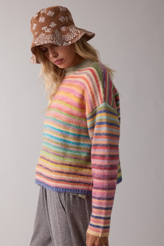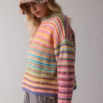 Wrap yourself in a burst of color with our Rainbow Knit Sweater, crafted from vibrant multi-color yarn that celebrates individuality. Each piece is uniquely one-of-a-kind, with color variations that make yours truly special. Perfect for adding a cheerful pop to any outfit, this cozy sweater brings joy and personality to your everyday wardrobe. Embrace the rainbow!