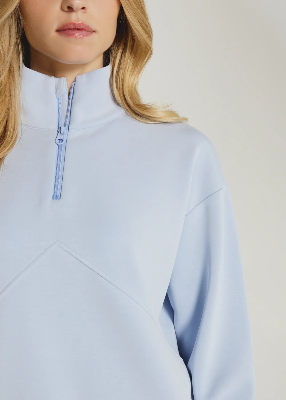 Your everyday go to crop quarter-zip. Wear over a basic or by itself and complete the look with joggers or biker shorts.