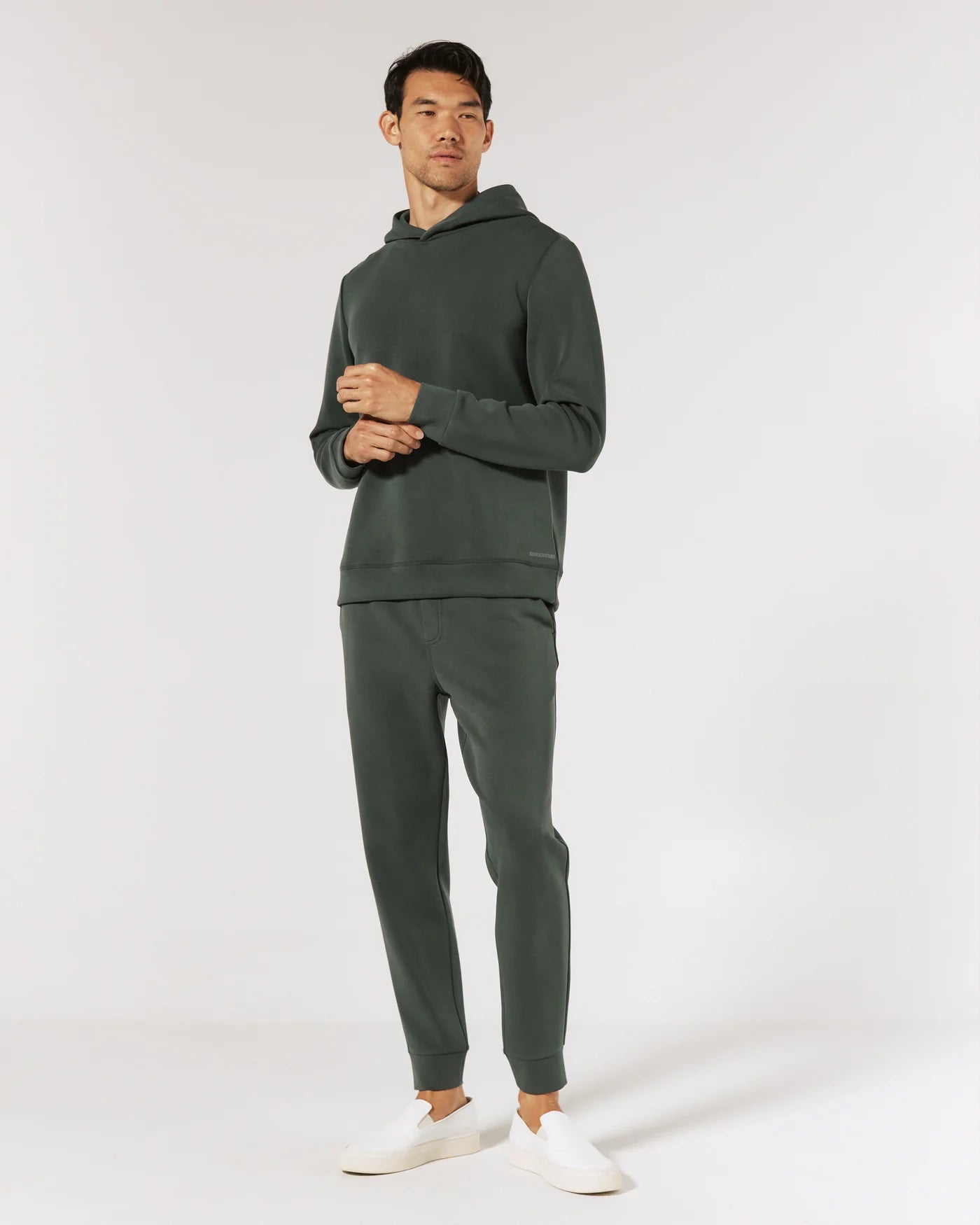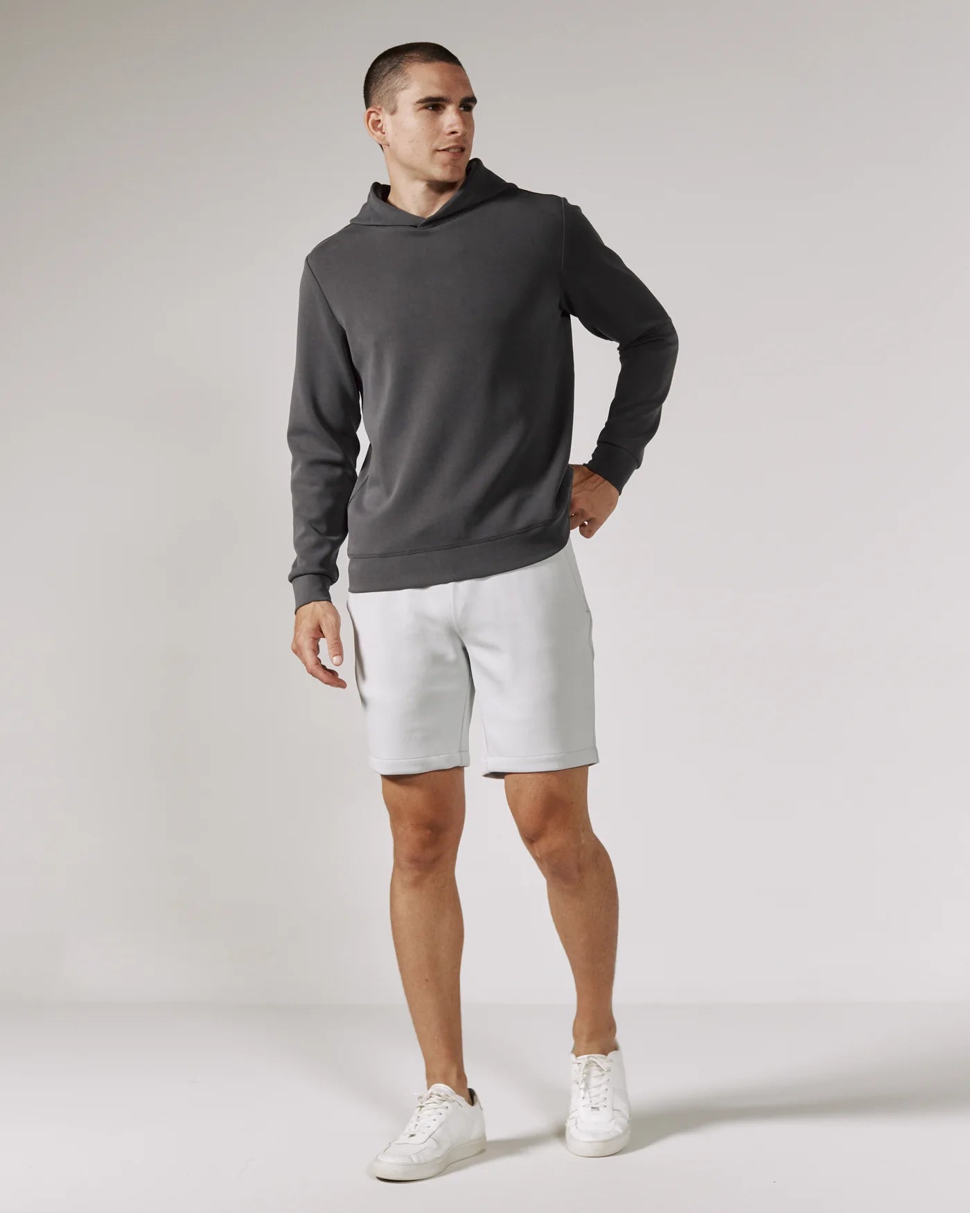 A contemporary relaxed hoodie that features barrel cuff and hem. Impossibly soft with the perfect amount of stretch and recovery. Wear by itself or under a jacket for a layered look.
