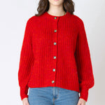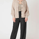 Cozy up with the Crewneck Textured Cardigan (Dex), perfect to wear open or zipped up as a sweater. Its soft fabric and playful balloon sleeves add a fun twist to your everyday look while keeping you comfy all day long.