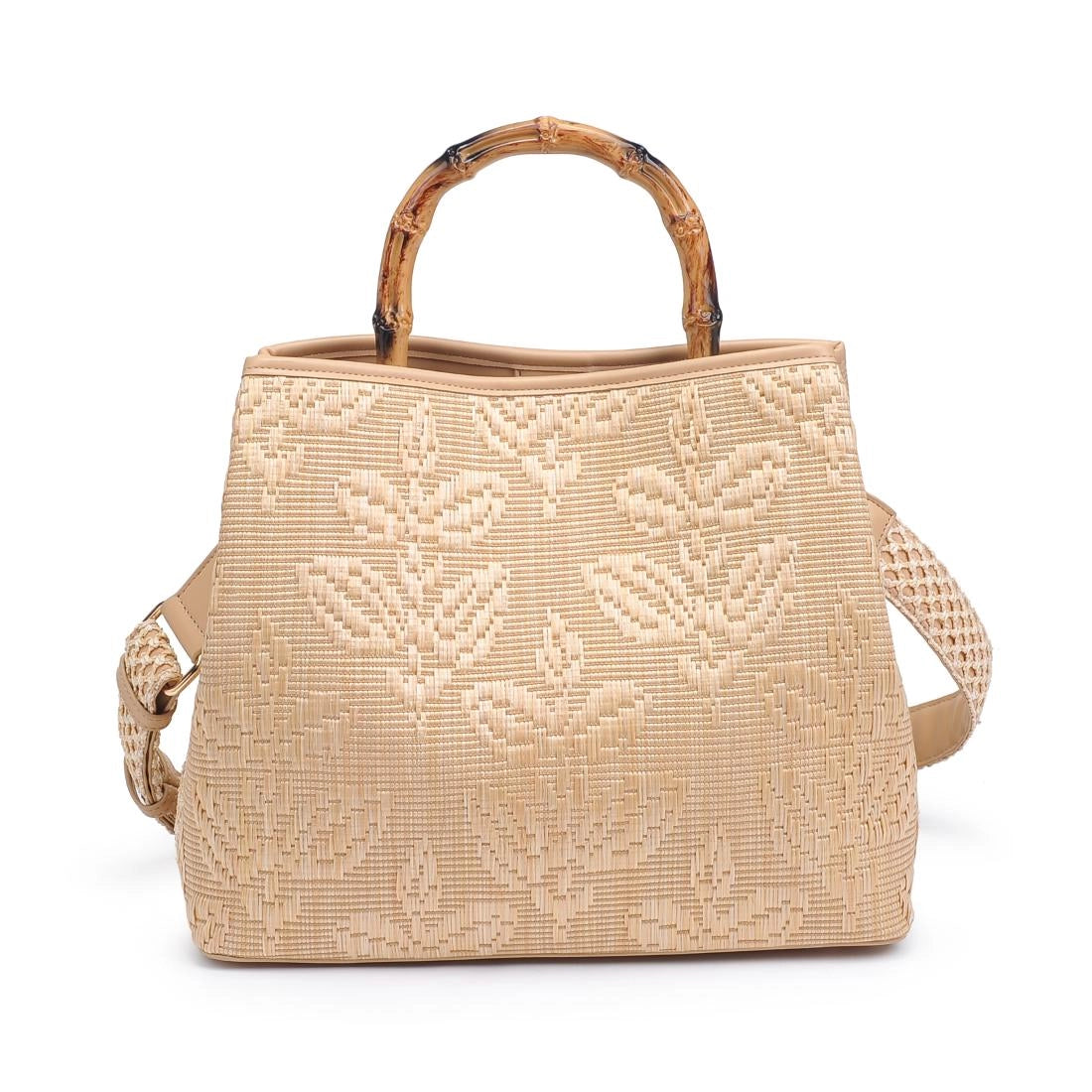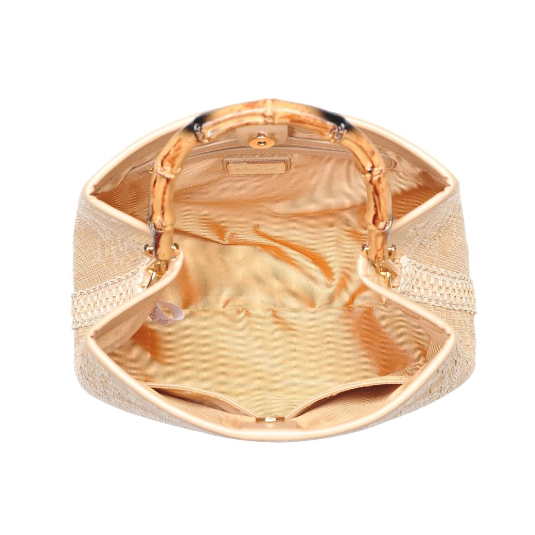With a spacious interior and well-organized compartments, it easily accommodates all your essentials. The unique bamboo handle adds a touch of sophistication, while the adjustable strap provides comfort for on-the-go lifestyles.