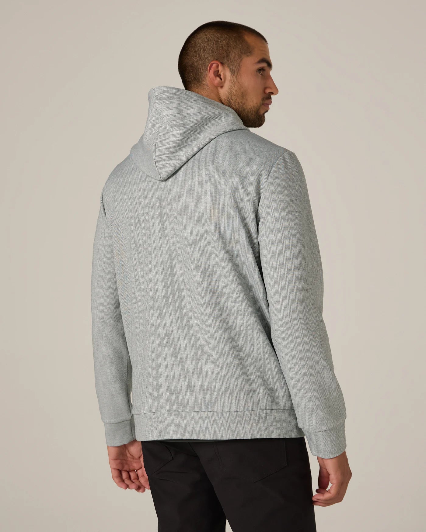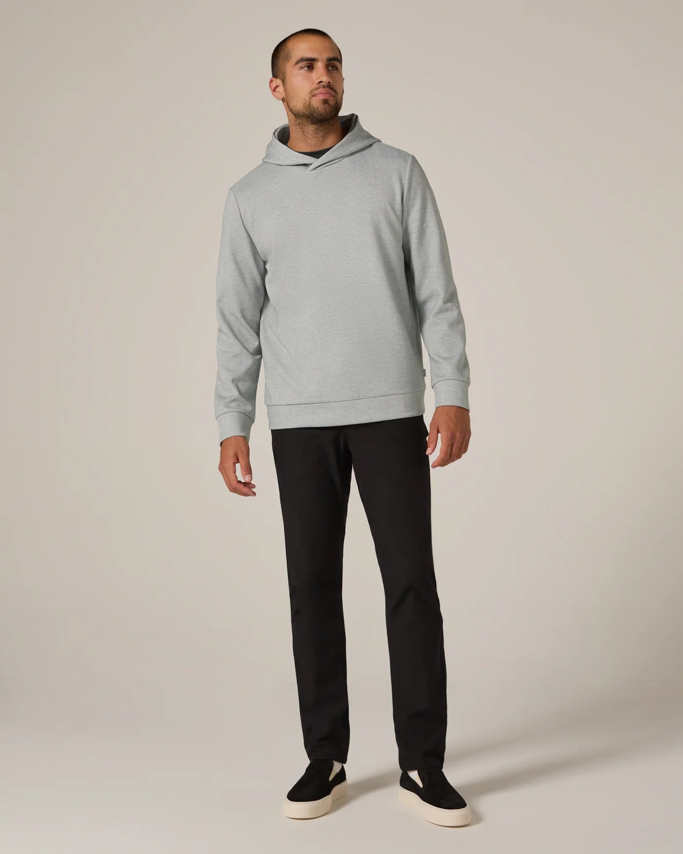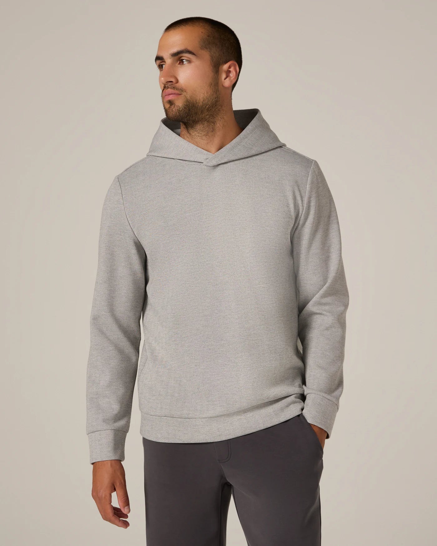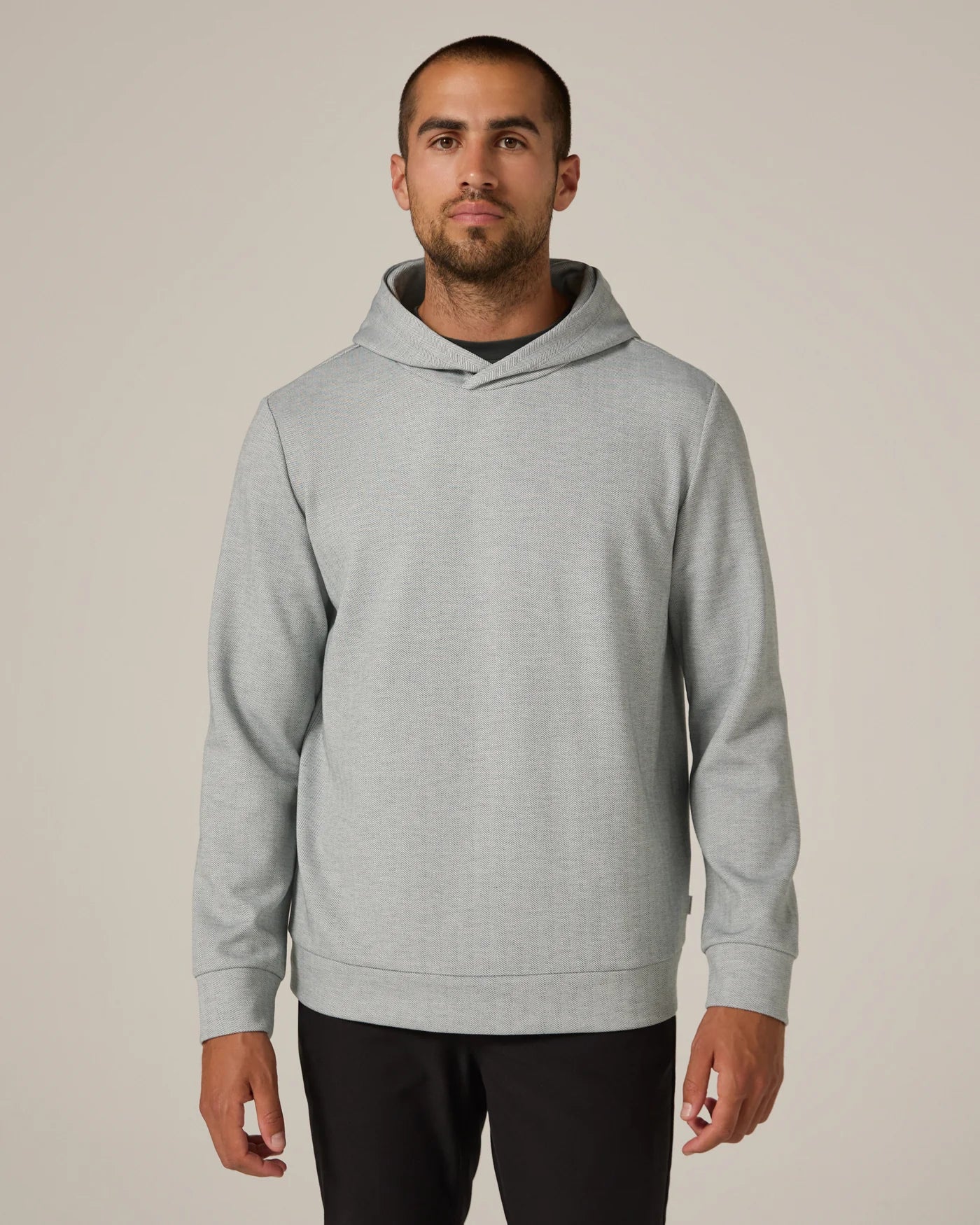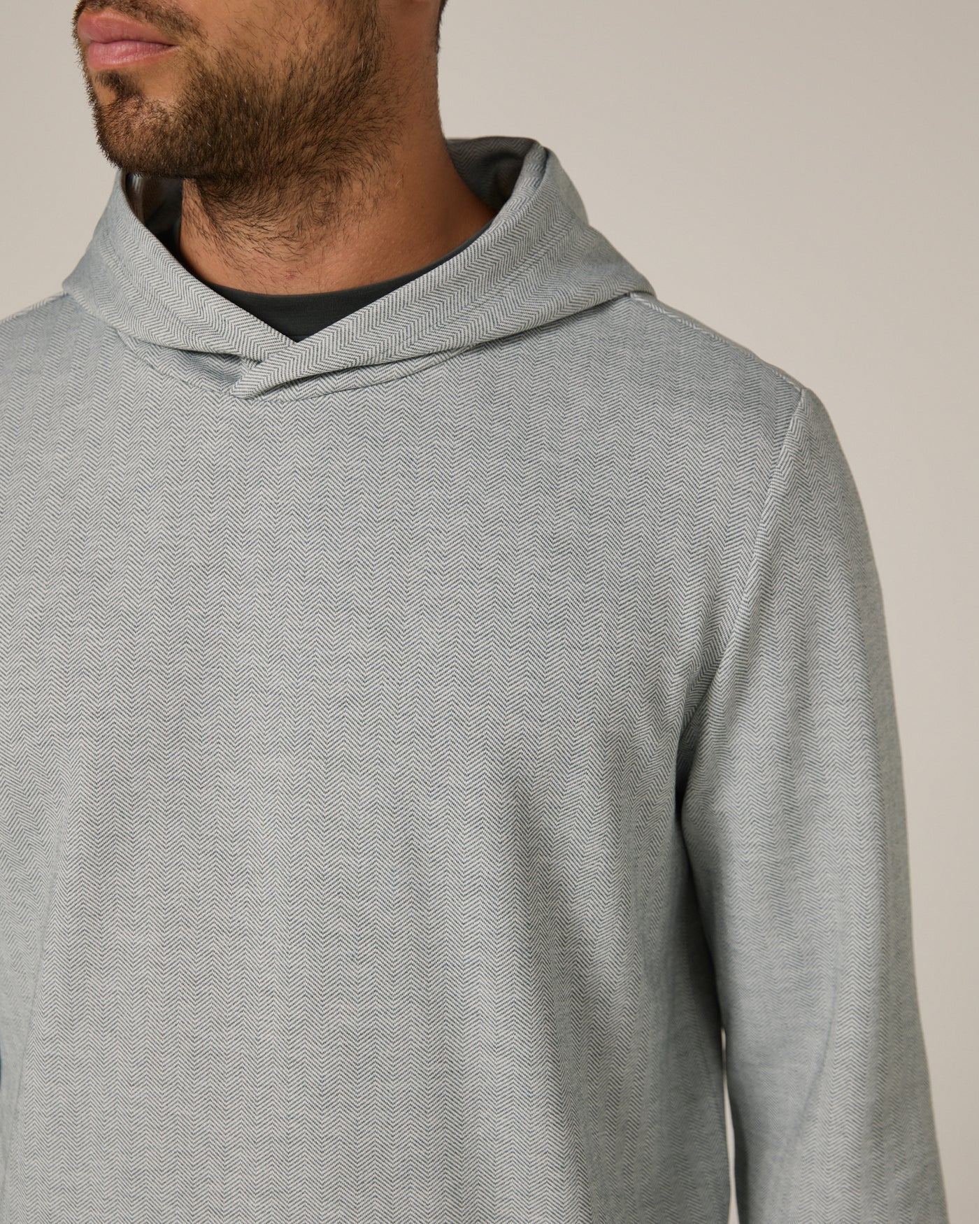 A modern layering piece, this herringbone double-knit hoodie features a crossover hood and pullover design. Made with 4-way stretch for the perfect balance of flexibility and recovery, it delivers an incredibly soft hand feel and looks just as sharp on its own as it does layered.