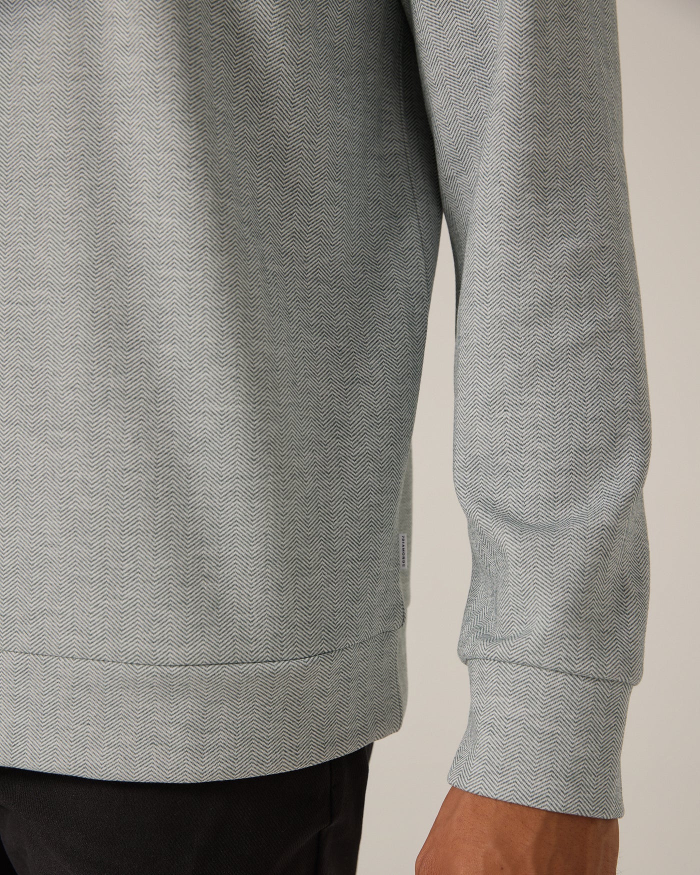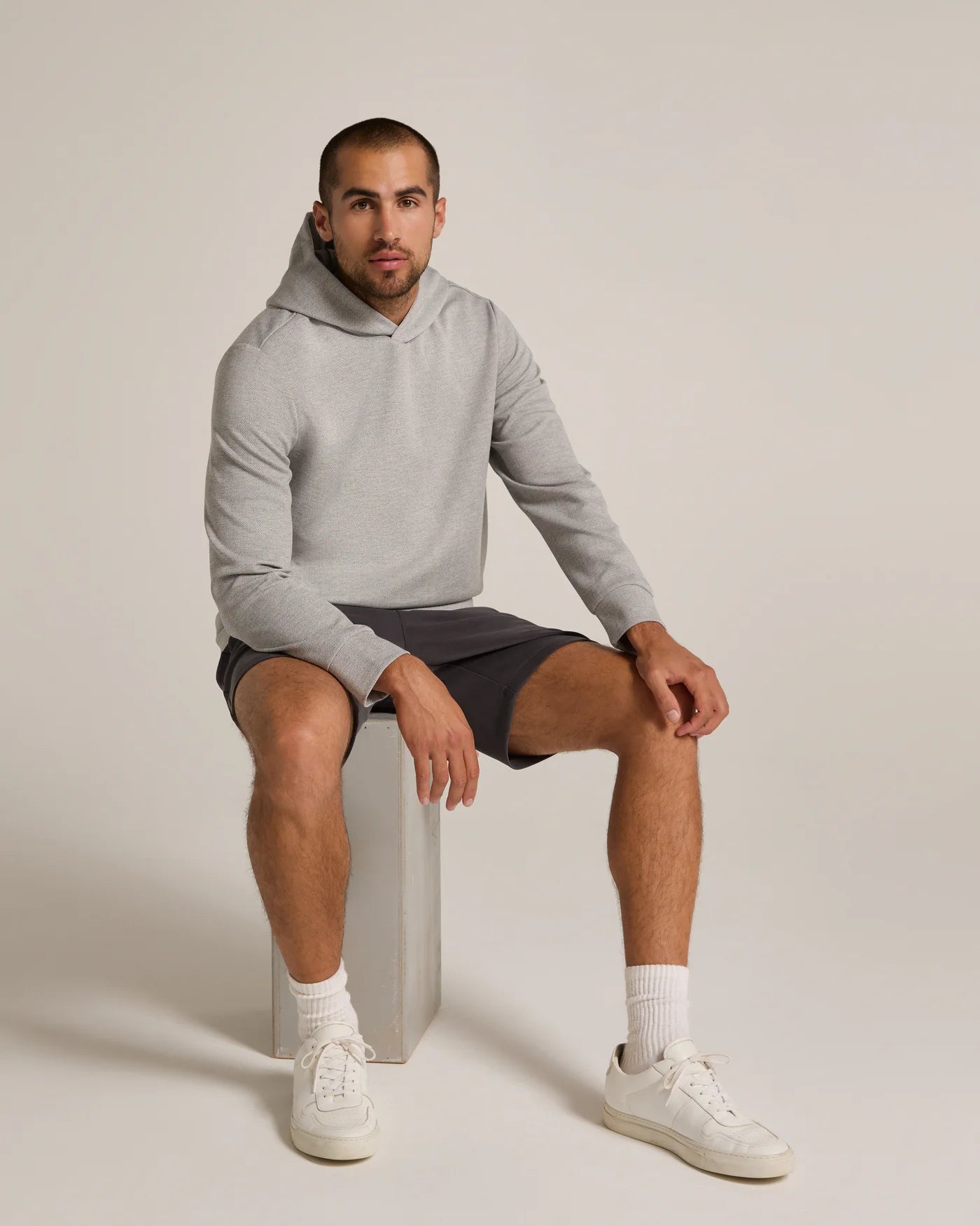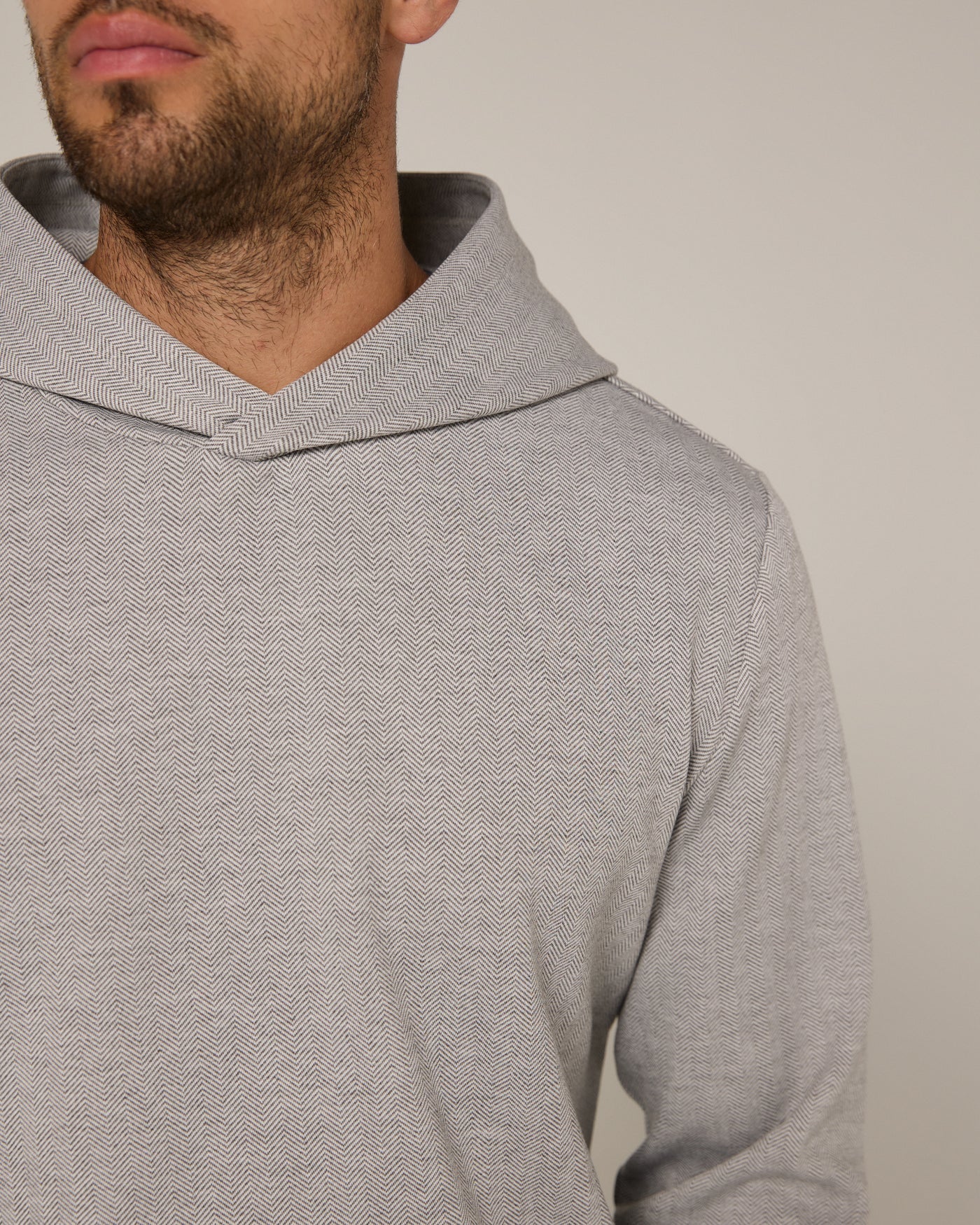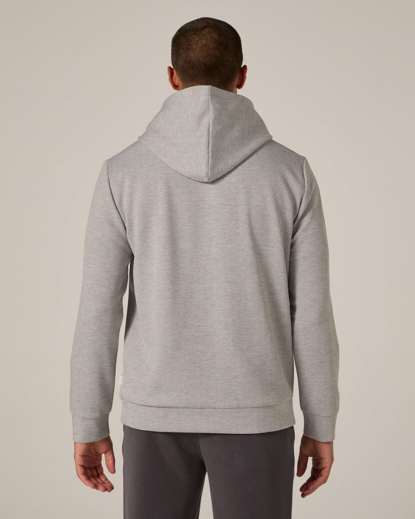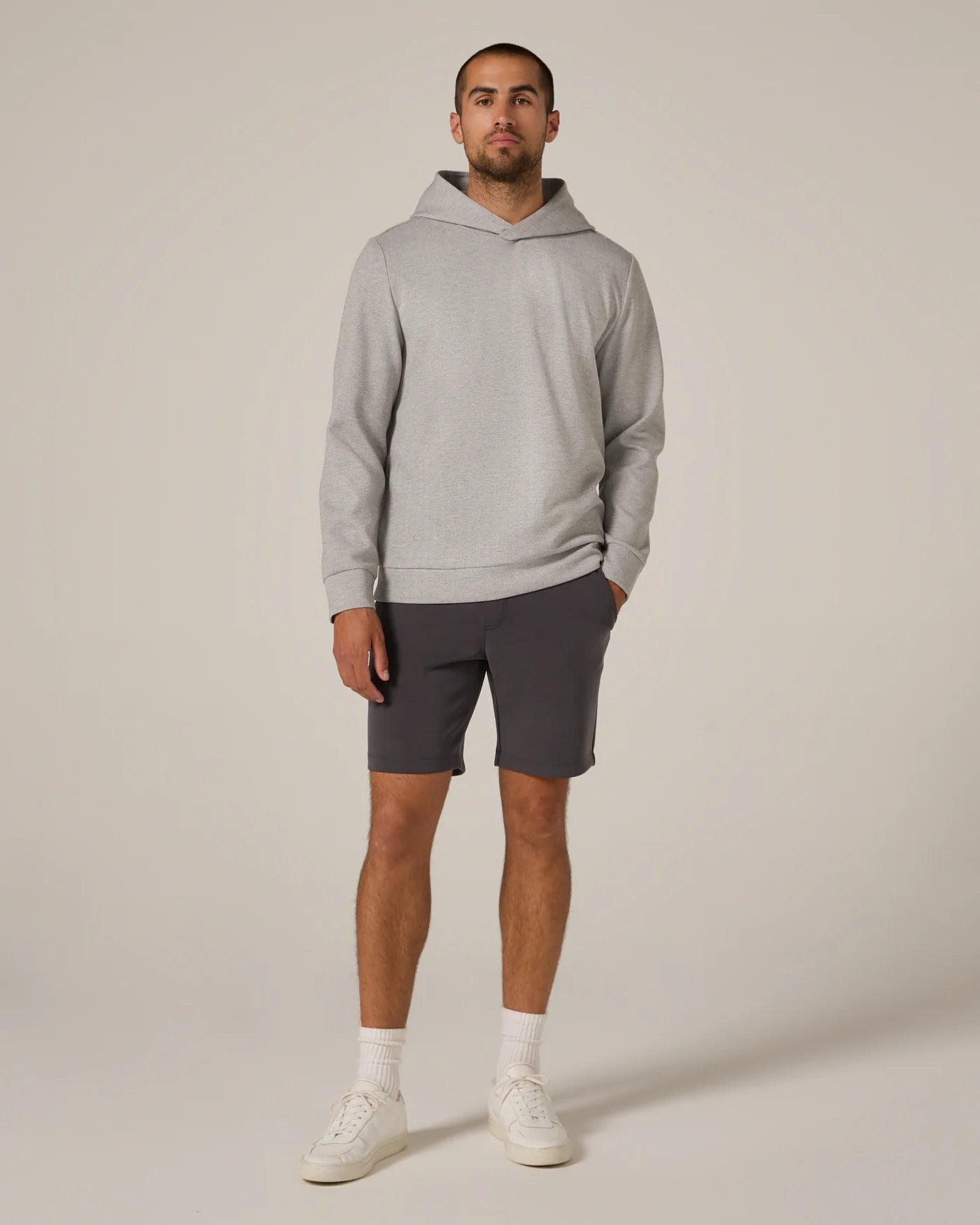 A modern layering piece, this herringbone double-knit hoodie features a crossover hood and pullover design. Made with 4-way stretch for the perfect balance of flexibility and recovery, it delivers an incredibly soft hand feel and looks just as sharp on its own as it does layered.