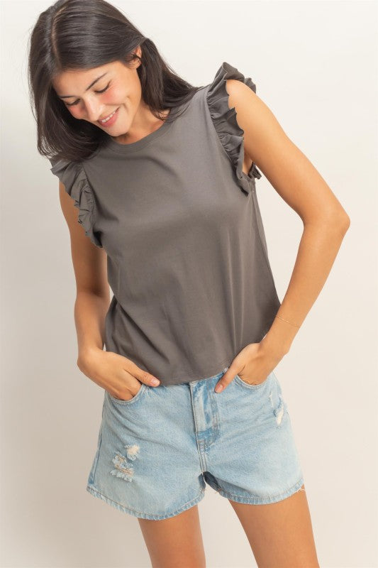 Ruffled Cap Sleeve Tank