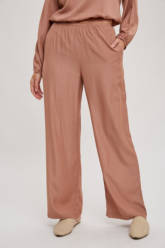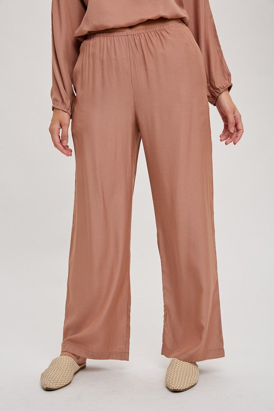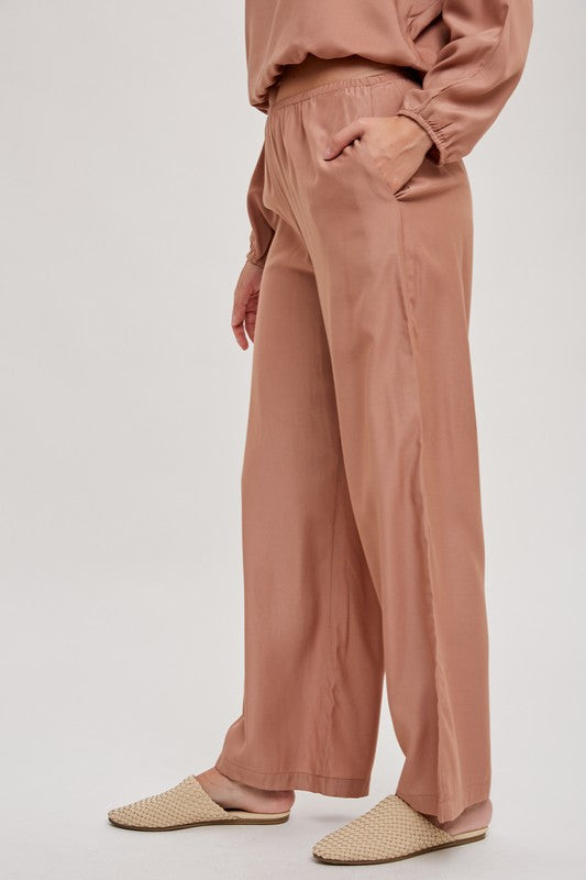 Slip into comfort with these Satin & Solid Straight Leg Pants. Featuring a smooth satin finish, an elastic waistband for easy wear, and handy side pockets, they blend style with practicality. Perfect for lounging or stepping out, these pants add a playful touch to your everyday look.