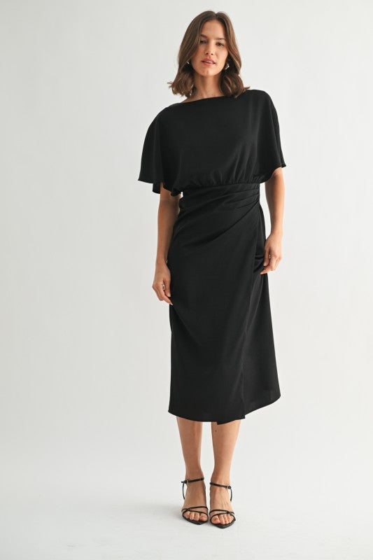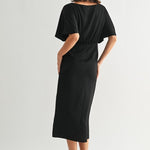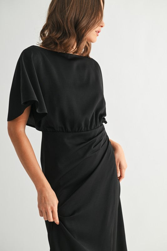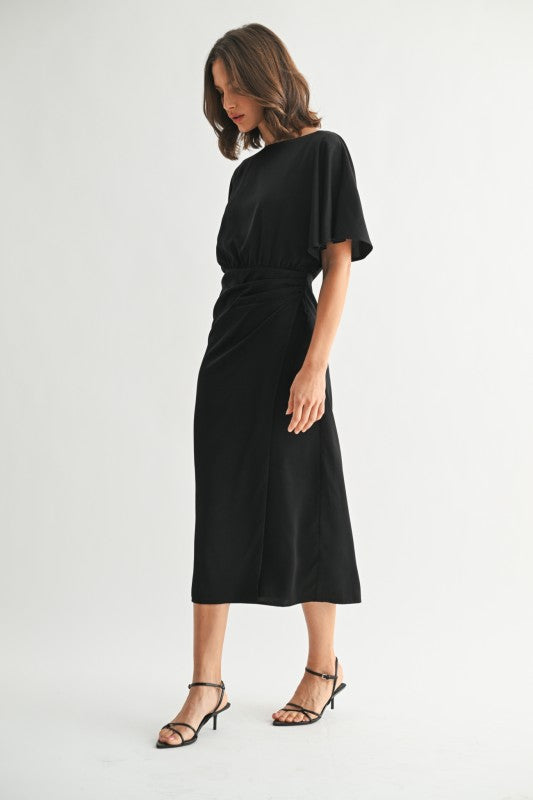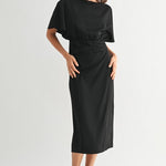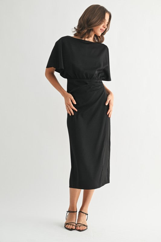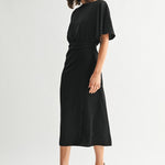 Slip into effortless sophistication with this satin wrap midi dress. The luxe satin fabric drapes beautifully while the wrap detail creates a flattering silhouette that works for any occasion. Short sleeves keep things breezy and comfortable, making it perfect for transitional weather. Whether you're heading to brunch, a dinner date, or a special event, this dress strikes the ideal balance between polished and fun. A timeless piece that deserves a spot in your rotation.