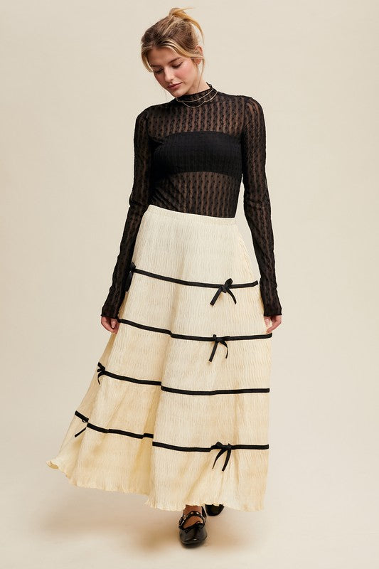 Elevate your layering game with this Sheer Textured Lace Layering Top! Crafted from lightweight, semi-sheer fabric with a charming textured pattern, it features a high neckline with a delicate ruffle edge and fitted long sleeves for a sleek silhouette. Thanks to its stretchy fit, it moves with you comfortably all day long. Whether worn over your favorite camisole or bralette, this minimalist chic piece adds a playful yet elegant touch to any outfit, making it a versatile must-have for every season.