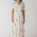 Twirl into spring with this charming floral maxi dress that celebrates the season in full bloom. Delicate flower details dance across the fabric, while the adorable tie-back closure adds a sweet, feminine touch that's perfect for garden parties or casual weekend adventures. The short sleeves keep things breezy and comfortable, making this dress an effortless go-to for warmer days ahead.