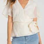 Short Sleeve Wrap Front Woven Top w/Tie (Liverpool)