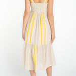 Effortless elegance meets playful style in this sleeveless midi dress. The flattering V-neckline creates a refined silhouette, while a fun contrast detail adds personality and visual interest. Perfect for transitioning from day to night, this midi length piece is versatile enough for casual outings or dressed-up occasions. A wardrobe essential that works as hard as you do.