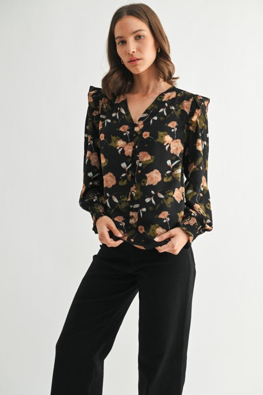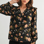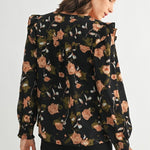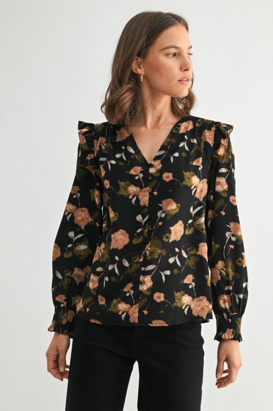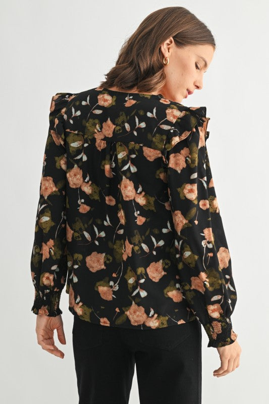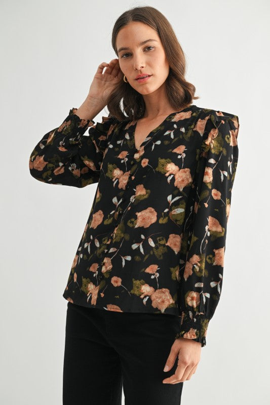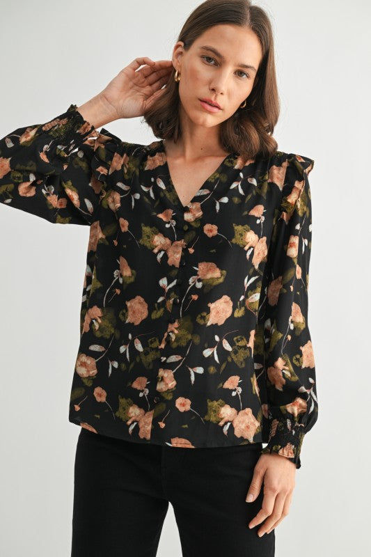 Elevate your style with this playful satin blouse featuring delicate smocking details and a charming flower print. Its smooth, glossy fabric dances with every move, adding a touch of whimsy to your day. Perfect for dressing up or keeping it fun and casual, this blouse brings a fresh burst of floral flair to any outfit.