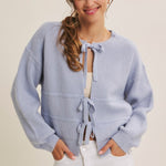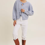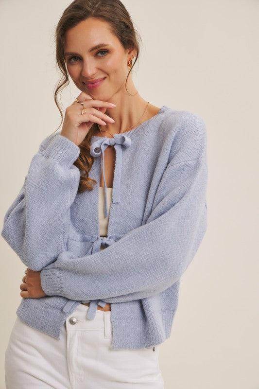 Wrap yourself in cozy charm with this Soft As A Cloud Brushed Cardi. Its soft brushed sweater knit feels like a gentle hug, while the elegant bow front adds a touch of whimsy. The round neck and long balloon sleeves create a playful yet polished look, perfect for layering on any day you want comfort with a little flair.